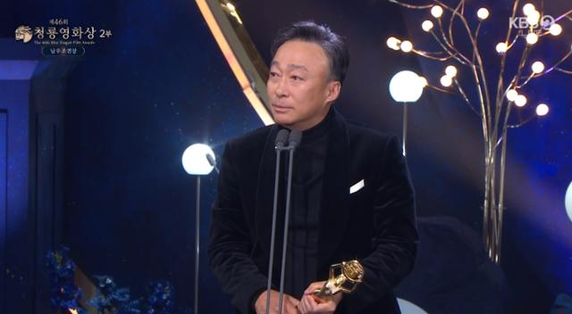 19일개최된'제46회청룡영화상'남우조연상수상한이성민,무대내려갔다가다시올라온이유는?19일제46회청룡영화상이서울영등포구여의도KBS홀에서개최됐다.행사는지난해에이어배우한지민과이제훈이공동MC를맡았다.KBS2영상캡처'제46회청룡영화상'이성민과박지현이조연상을품에안았다.특히이성민은함께출연한박희순에게미안하다는인사를남기며남다른의리를과시했다.19일제46회청룡영화상이서울영등포구여의도KBS홀에서개최됐다.행사는지난해에이어배우한지민과이제훈이공동MC를맡았다.청룡영화상은한해한국영화를이끌어온영화인들이한자리에모여성취를기념하고관객의사랑에보답하는뜻깊은축제로지난2024년10월11일부터2025년10월7일까지국내극장개봉및OTT공개된한국영화를대상으로최다관객상과청정원인기스타상을포함한총18개부문을시상한다.이날치열한경합끝에'어쩔수가없다'의이성민이남우조연상을차지했다.앞서'얼굴'의권해효,'파과'의김성철,'하얼빈'의박정민,'좀비딸'윤경호가후보로이름을올렸다.이성민이출연한'어쩔수가없다'는다이루었다고느낄만큼삶이만족스러웠던회사원‘만수’(이병헌)가덜컥해고된후,아내와두자식을지키기위해,어렵게장만한집을지켜내기위해,재취업을향한자신만의전쟁을준비하며벌어지는이야기를담는다.이성민은극중재취업이절실한제지업계베테랑범모역을소화하며디테일을살린감정표현과사실적인생활연기로극에현실감을불어넣었다는평가를받았다.모두의박수속에서무대에오른이성민은"기대를안한것은아니지만'설마'싶었다.늘손바닥에불이나듯박수만쳤는데오늘은유독많이쳤다.늘후보에오를때마다수상소감을준비해야할까고민했지만이번에는정말못했다.받을수없는역할이었는데주셔서고맙다"라면서감격스러운마음을내비쳤다.이어"이상은저에게멋진캐릭터를주신박찬욱감독님덕분이라고생각한다.또손예진이병헌그리고혜란이너무고맙다.지금감독님은이병헌과함께미국에서고생중이다.저희영화통해서좋은성과를거두길바란다"라며소감을마무리지었다.이후이제훈과한지민이진행을이어가던중이성민은다시무대에등장해"박희순이후보가될줄알았다.희순이가못받아서미안하고고맙다"라고덧붙여모두의웃음을자아냈다.뒤이어여우조연상후보로는'히든페이스'박지현,'얼굴'신현빈,'어쩔수가없다'염혜란,'좀비딸'이정은,'검은수녀들'전여빈이선정됐으며박지현이영예를안았다.박지현은"상을받을줄몰랐는데받게돼굉장히떨린다.이역할로저를생각해주시고믿어주셨던감독님,함께연기한조여정언니,송승헌선배님감사하다"라면서끝내눈물을흘렸다."제가'곤지암'으로신인상후보에올랐을때는정말아무것도모르던시절이다.오늘이자리에는동료들도계시고응원하는분도있다는것이너무좋다.이곳에제가함께있다는것만으로행복하고영화를사랑한다는것을느꼈다.상욕심이없는데앞으로더많이탈수있도록열심히연기하겠다"라고떨리는목소리로감사인사를남겼다.우다빈기자[email protected]©한국일보.무단전재및재배포금지.