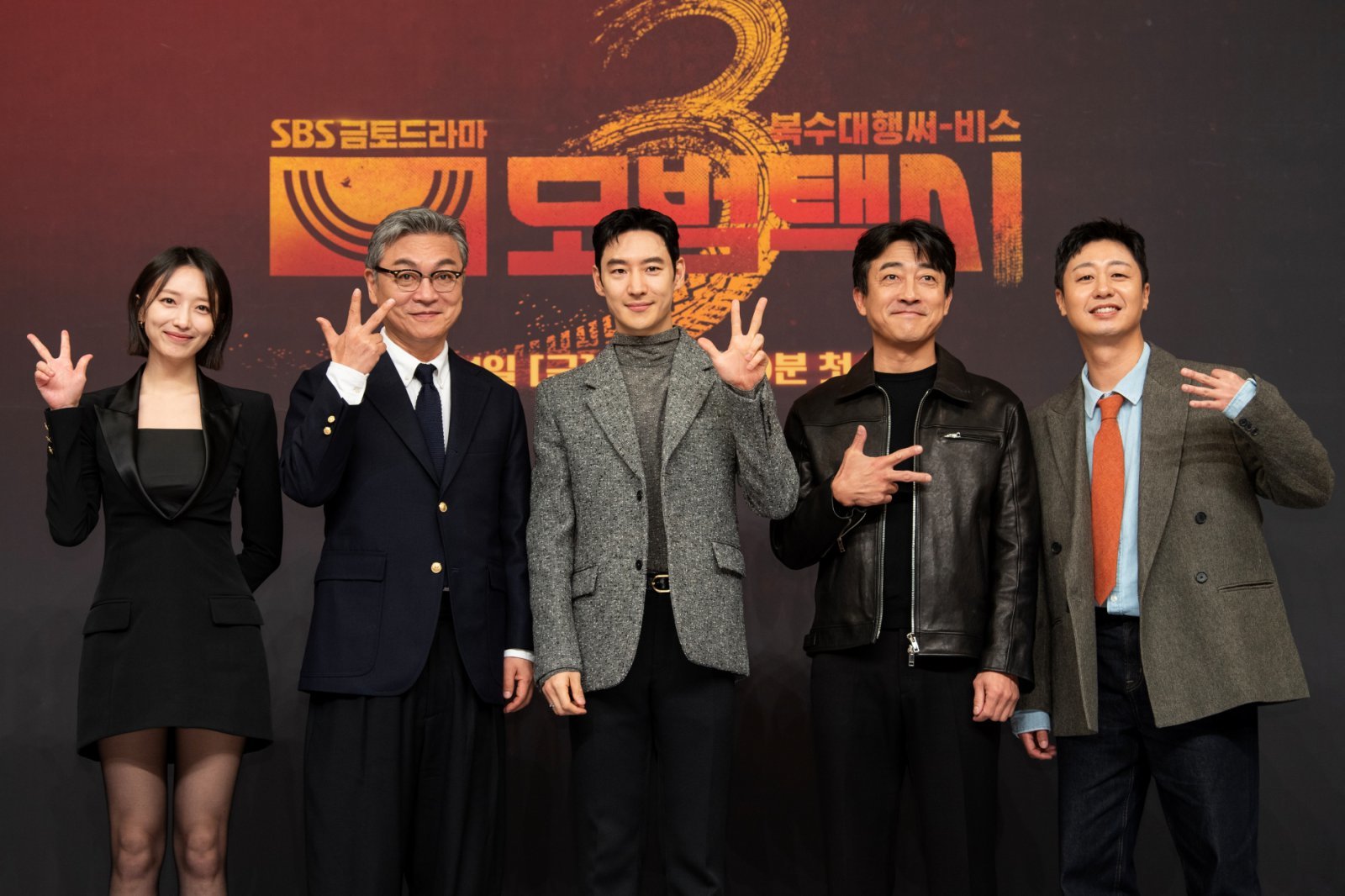‘모범택시3’.사진l유용석기자많은시청자들이기다려온‘모범택시’가세번째운행을시작한다.18일오후3시서울시양천구목동SBS에서는SBS새금토드라마‘모범택시3’제작발표회가열린가운데강보승감독,이제훈,김의성,표예진,장혁진,배유람이참석했다.‘모범택시3’는동명의웹툰을원작으로한시리즈물로,베일에가려진택시회사무지개운수와택시기사김도기가억울한피해자를대신해복수를완성하는사적복수대행극을그린작품이다.강보승감독은작품에대해“시즌3는완결된이야기처럼보여졌으면했다”면서“앞선사건에서뒷사건에대한힌트가있고,단순히‘모범택시’에서도움을받은것에서끝내는게아니라조금더따뜻한이야기가됐으면한다는생각이었다.각에피소드마다다루는사건은다르지만,결국커다란하나의이야기가될것”이라고밝혔다.‘모범택시3’에는전시즌을함께한‘무지개5인방’이제훈(김도기역),김의성(장대표역),표예진(고은역),장혁진(최주임역),배유람(박주임역)이다시뭉쳤다.또전시즌이2023년이후방영된국내지상파및케이블드라마전체시청률5위(21%)를기록한만큼,2년만에시즌3로돌아온‘한국형케이퍼드라마근본’에기대가높아지고있는상황이다.김의성은‘모범택시’시리즈가롱런할수있었던이유가무엇이라고생각하냐는질문에“법과제도가우리를지켜주지못한다고생각하는분들이많지않나.그런부분에서사적복수에통쾌함을느껴주는분들이많은것같다.물론현실에서일어나면안되는일이지만,그런부분에서저희드라마를응원해주시는분들이많다고생각한다”라고답했다.같은질문에이제훈은“무지개운수식구도마찬가지고작가님,감독님도같은마음이지않을까생각한다.처음이시리즈를만들때소중한마음이지금까지도변치않는다는점이시청자들의사랑을받은이유아닐까한다”라고말했다.‘모범택시3’.사진l유용석기자‘모범택시’시리즈의기대포인트중하나는강력한부캐다.이제훈은앞서왕따오지,농부도기,법사도기등다양한부캐를완벽히소화해시청자들의뜨거운호응을얻었다.이제훈은이전시즌을뛰어넘을부캐를기대해도되냐는질문에“1,2회에제가가진모든것들을쏟아부었다.국제범죄에피소드에서‘풍운아도기’가어떻게악의무리들을처단할지기대해달라.그와반대로3,4회에는귀엽고반전이있는‘호구도기’가나온다.또저뿐만아니라무지개운수식구들의부캐가만만치않으니그런부분도잘봐주셨으면좋겠다”라고말했다.시즌3홍보과정에등장한‘최종장’이라는문구에대한질문도나왔다.이제훈은‘모범택시’가시즌3로마무리되는것이냐는말에“개인적인마음은무지개운수가오랫동안시청자들에게사랑을받았으면하지만,그게바람만으로는이뤄질수없다고생각한다”라고운을뗐다.이어“그렇다면제가이번시즌에할수있는것은모든것을다쏟아붓겠다는생각으로임하는것이었다.만약이번시즌이마지막이라면,시청자들이‘이배우가열정과사랑을이시즌에다쏟아냈구나’라는것을느꼈으면하는바람이다”라고명확한답을하지않았다.이에김의성은“‘모범택시’는김도기기사의도가니연골에달려있다고생각한다”며“김도기기사의연골만건강하면영원히할수있지않을까”라고재치있게답변해현장분위기를화기애애하게만들었다.끝으로이제훈은“작가님이이번시즌김도기를다크히어로물에서독보적인입지를굳힐수있을정도로잘써주셨다.김도기가위대하게느껴질정도였다.김도기역시많은에피소드들을거치면서지치고힘든부분이있을텐데,이번시즌마지막에서는그런부분에대해치유받을수있을것”이라고예고해방송에대한기대를높였다.한편‘모범택시3’는오는21일오후9시50분첫방송된다.[이다겸스타투데이기자]Copyright©스타투데이.무단전재,재배포및AI학습이용금지