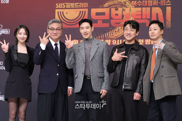 티브이데일리포토[티브이데일리김진석기자]확신의IP'모범택시'가대상을향한세번째운행을시작한다.18일오후서울시목동에위치한SBS사옥에서새금토드라마'모범택시3'(극본오상호·연출강보승)제작발표회가진행됐다.현장에는강보승감독과이제훈,김의성,표예진,장혁진,배유람이참석했으며,방송인박경림이진행을맡았다.'모범택시3'은동명의웹툰을원작으로한시리즈물로,베일에가려진택시회사무지개운수와택시기사김도기(이제훈)가억울한피해자를대신해복수를완성하는사적복수대행극을그린다.지난2021년첫선을보인'모범택시'시리즈는억울한피해자들을대신해사적복수대행서비스를제공하는택시회사라는독보적인콘셉트를기반으로,권선징악의짜릿한카타르시스,케이퍼물특유의다이내믹한재미까지잡은탄탄한세계관을탄생시키며선풍적인인기를끌었다.이어'모범택시2'또한2023년이후방영된국내지상파및케이블드라마전체시청률5위(21%)를기록,사이다히어로물을대표하는메가히트IP로사랑받았다.◆시즌1조연출→시즌3메인연출강보승감독"사건재현보다표현에중점"이날강보승감독은시즌1의조연출에서시즌3의메인연출까지맡은소감을전했다.그는"재밌게찍었다.배우분들도익숙한분들이라편안하게연출할수있었다"라고담백한소감을전했다.시즌3을맞이한만큼사랑받은IP기도하지만,중간유입이어렵다는단점에대해강감독은"저희이야기가선형적이고직선적인이야기다.정의로운인물들이나서서해결해주는단순한이야기기에잘받아들이지않을까싶다"라며"피해자역할을맡은배우와빌런을맡은배우들이많이도와주셨다.낯설지않은배우들이기에이게시즌3의장점이될수도있겠다"라고설명했다.연출하며둔주안점에대해강보승감독은"무엇보다완결된이야기처럼보였으면했다.에피소드마다다른사건을다루지만,앞사건에뒷사건에대한힌트가있고,점점재밌어진다"라며"항구로추정되는곳에서액션을하는1부와비슷한형식으로16부클라이맥스를구성해촬영했다.연결성을주려고했다"라고덧붙였다.강감독은"빌런에대한디자인도신경을많이썼다.빌런이어떻게빌런이됐는지,핍진성있게설명하는게큰부분이었던것같다.시즌10까지갈수있는훌륭한IP라고생각하고,시청자분들에게감사하다생각한다"라고감사함을표했다.이어시의성있는사건이작품에나오냐는질문에감독은"물론만나볼수있다.지금사건들이라기보단사건들은반복되어왔기에그렇다"라며"이번에사소한영역이지만시즌3엔택시회사에두더지잡기게임기를놔줬다.두더지잡기게임은두더지를뭘로쳐도나오지않냐.두더지를멈추기위해선기계장치로들어가야하지않겠냐고생각한뒤,이후사건들을골랐다.본질적인사건에집중했다.사건을재현하는것보다표현하는데중점을뒀다.좀더미술적으로연출하는데중점을뒀다"라고덧붙였다.◆이제훈"시즌3,모든걸쏟아낸다는마음으로…연말트로피가져올수있길"주인공김도기역할로돌아온이제훈은카액션에대해"업그레이드됐다.차도더좋아졌다.그전택시들은클래식하고유니크한맛이있었는데,이번엔성능부터너무잘달린다.이번엔밟아도쭉쭉나가니까편했다"라며"디자인도멋지고,저희의시그니처자동차가'모범택시3'의상징으로기억될것같다.현장에선도기차라고불러주셨다"라고전했다.앞선시즌1,2모두큰사랑받은바있기에이제훈은이에대한부담감도전했다.그는"솔직히많이긴장된다.감히앞선시즌을이길거라고말씀드리긴힘들다.현장에서고생했던순간들을기억한다면,시청자분들이시즌3가1,2보다깊어지고끈끈하고통쾌함이있다고기대하실것같다"라며"사실시즌1을시작할때이어질이야기라고생각하지못했다.많은사랑을받아시즌3까지할수있던건시청자분들의응원과사랑덕이라생각한다.이번시즌도응원을받으리라생각한다.응원을받은만큼시원함과빅재미로보답드릴걸약속드리겠다"라고다짐했다.이어이제훈은김도기에대해"그가가진트라우마와악당을상대하면서보이는모습들이시즌3에도이어지면서,김도기란캐릭터를뛰어넘을수있는게뭐가있나싶을정도로악의무리를처단하는영화나드라마에서독보적인캐릭터로입지를굳힐수있지않을까싶다"라며"김도기캐릭터가이번시즌3에서위대하게느껴졌던것같다"라며작품과캐릭터에대한애정을전했다.배우들은'모범택시'시리즈가사랑받은지점에대해서도생각을전했다.배유람은"진정성이중요하다"라고밝혔고,장혁진은시청자들의관심에감사를표했다.표예진또한"애정이있어서작품에최선을다할수있고꾸준할수있는것같다"라고소감을전했다.김의성은"법과제도가우릴지켜주지못한다고생각하시는분들이많지않냐.이런사적복수에대해통쾌감을느끼는분들도많을것이다.현실에서이뤄지면안되겠지만,저희드라마를응원해주시는분들이많은것같다"라고밝혔다.앞서이제훈은2023년'모범택시2'를통해SBS연기대상을수상한바있다.그는'모범택시3'으로돌아온만큼수상에대한기대도숨기지않았다.이제훈은"아직촬영을진행중이다.그때마무리가되어서야이런감정을느끼겠지만,글쎄다.그런생각을전혀못하고있다"라면서도"그시상식자리에저희다섯명과감독님이함께테이블에자리에앉아여러트로피를볼수있지않을까기