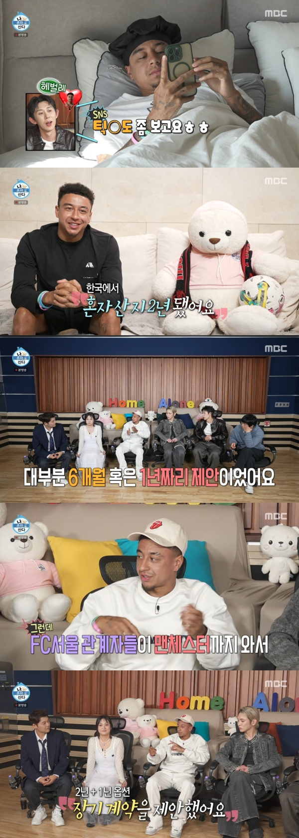 사진=MBC[스포츠투데이김태형기자]영국출신축구선수제시린가드가일상을공개했다.14일방송된MBC'나혼자산다'에는FC서울에서활약중인제시린가드가출연했다.이날오프닝에서전현무는"기안84에게줄선물이있다"며'무무펀런가입신청서'를전달했다.가입신청서에는"별도의가입심사후이틀안에결과를통보한다.뛰는속도는무무에게철저히맞춰야한다"고적혀있었다.전현무가"가입할거냐"고묻자,기안84는"이걸또가입을해야돼?"라고반응해웃음을안겼다.전현무는"(가입신청서)100장복사해놨다"며러닝에대한열정을보였다.이어린가드가모습을드러냈다.그는능숙한한국어로"안녕하세요제시린가드입니다"라고인사했다.박나래가기안84에게"제2의고향이런던이라고얘기해"라고하자,기안84는"두유노사치갤러리?"라고물었다.린가드는기안84가런던에서전시를했다는말에"다음에갈때나랑같이가자"고제안했다.그는"다함께"라고덧붙이며"런던춥다"고말했다.이에박나래는"괜찮다.아임핫걸"이라고화답해웃음을자아냈다.사진=MBC린가드의일상도공개됐다.린가드는이불속에서SNS를보며하루를시작했다.그는"한국에서혼자산지2년됐다"고밝혔다.또한물티슈로얼굴을닦아눈길을끌었다.린가드는"올리브영에서세안티슈를샀다.K-스킨케어가최고다.PDRN,레티놀"이라며성분까지빠삭한모습을보였다.박나래는"뷰티얼리어답터"라며감탄했다.그의집은한강뷰였다.린가드는"전망좋은아파트를좋아한다.좋은뷰에서눈뜨는건항상기분좋다"고말했다.화이트,그레이톤의럭셔리하우스가감탄을자아냈다.드레스룸에는수집중인축구유니폼이가득했다.그중엔박지성유니폼도있었는데,린가드는"최근지성형을만나서친필사인을받았다"고자랑했다.다른유니폼들에대해"전부한국빈티지숍에서샀다"고밝혔다.박나래는"직접받은게아니고?우리랑똑같네"라며놀랐다.집곳곳에는축구관련소품과한국적오브제가가득했다.'오징어게임'감독사인과K과자,라면등도있었다.린가드는많은빅클럽을두고한국에온이유를묻자"유럽과전세계에서제안이왔었는데대부분6개월혹은1년짜리제안이었다.FC서울관계자들이맨체스터까지와서2년+1년옵션장기계약을제안했다.또저를보러12시간을날아오셨지않나.그래서결정했다"고답했다.[스포츠투데이김태형기자[email protected]]Copyright©스포츠투데이.무단전재및재배포금지.