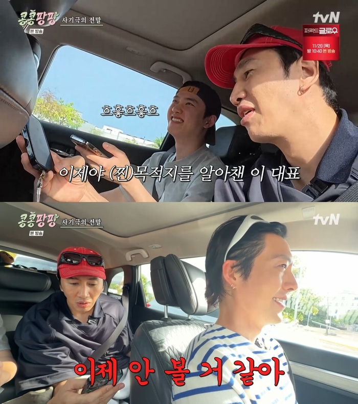 ‘콩콩팡팡’.사진ItvN‘콩심은데콩나서웃음팡행복팡해외탐방’방송캡처배우김우빈이도경수의사기극에절교를선언했다.14일방송된tvN‘콩심은데콩나서웃음팡행복팡해외탐방’에서는칸쿤탐방에나선이광수,김우빈,도경수의모습이그려졌다.이날이광수,김우빈,도경수는칸쿤에서의첫식사를기대했다.이들은라멘을먹기로약속했고,이광수,김우빈은렌터카를빌리는데집중했다.반면도경수는세비체에대한미련을떨치지못해눈길을끌었다.이후도경수의사기극이시작됐다.운전대를잡은김우빈에게라멘가게가아닌세비체가게주소를알려준것.뒤늦게진짜목적지를알아챈이광수는“얘진짜미X놈아니냐.이게말이되냐”고황당해했다.김우빈은“아무래도우리한국돌아가면이제안볼것같다”고절교선언을해웃음을자아냈다.한편‘콩심은데콩나서웃음팡행복팡해외탐방’은매주금요일오후10시10분방송된다.[이세빈스타투데이객원기자]Copyright©스타투데이.무단전재,재배포및AI학습이용금지