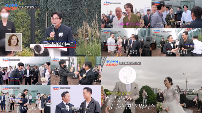‘조선의사랑꾼’김병만결혼식(사진=TV조선)TVCHOSUN극사실주의다큐예능‘조선의사랑꾼’에서9월결혼한김병만의초특급인맥들이공개된다.20일(월)방송될‘조선의사랑꾼’선공개영상에서는지난9월결혼한김병만의특별한결혼식현장이최초로공개됐다.한강에서열린김병만의결혼식에는무명시절부터함께한절친이수근이사회자로나서화기애애한분위기를자아냈다.또,김병만을'육아의달인'으로만들어주겠다고공언한가수KCM은물론배우김동준,최여진,전혜빈등이김병만에게축하인사를건넸다.그리고'사랑꾼MC'김국진이말쑥한정장차림으로참석해직접김병만의자녀들과인사를나눴다.코미디언샘해밍턴,가수백호,배우이태곤과'30대훈남아들장가보내기프로젝트'중인코미디언협회장김학래도자리를빛냈다.김학래는선배로서"행복하게잘살아라…너는재주꾼이니까뭐든잘할거야"라고김병만에게덕담을투척했다.한편,분주한예식장에키가훤칠한의문의남성이등장했다.그러자웨딩드레스를입은김병만의아내는안절부절못하며"어떡해…빨리사진찍어주세요"라고허둥대는모습으로궁금증을자아냈다.VCR을지켜보던사랑꾼MC들도모두놀라고,신부까지홀려버린(?)이남자의정체는본방송에공개된다.절친과지인이한자리에모여,특별하고유쾌한축하가오간김병만의결혼식은20일(월)오후10시방송되는극사실주의다큐예능TVCHOSUN‘조선의사랑꾼’에서공개된다.박지혜기자[email protected]뉴스연예팀기사제보[email protected]©bnt뉴스.무단전재,재배포및AI데이터활용금지