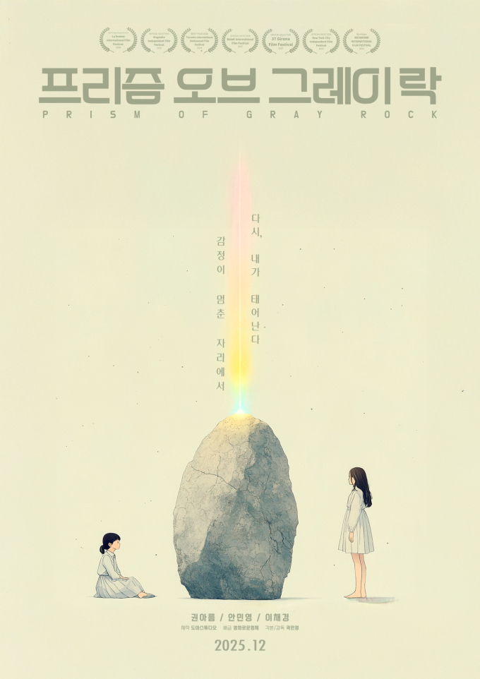 ‘프리즘오브그레이락’,예술로치유되는감정의프리즘(제공:영화로운형제)오랫동안감정을억누르고‘회색바위’처럼살아온주인공이자신을받아들이고본래의색을되찾아나가는여정을그린감성치유영화‘프리즘오브그레이락’이티저포스터를공개했다.감각적인스토리텔링과섬세한감정연출로주목받아온곽민영감독이각본과연출을맡은해당영화는인간내면의상처와치유의과정을예술적감성으로풀어낸작품이다.곽민영감독은이전작품들에서보여준감정의결을섬세하게포착하는연출력으로관객들에게강렬한인상을남겼으며,이번영화에서도인간의복잡한감정구조와관계의균열을진정성있게그려내며한층깊어진세계관을선보인다.주인공‘도아’라는인물을통해인간의불완전함과회복의아름다움을섬세하게풀어내고특히‘도아’가겪는감정의소용돌이와인간으로서의갈등은현대를살아가는많은이들의내면과닮아있어깊은공감과위로를선사할예정이다.이번에공개된티저포스터는웅크린채바위를바라보는한소녀와,반대편에서같은바위를마주한성인이된‘도아’의모습을담아시선을사로잡는다.20년의세월이흘렀지만회색바위는여전히그자리에있고,그단단한표면엔보이지않는균열이생겨있다.그틈사이로번져나오는프리즘의한줄기빛은,오랜시간닫혀있던감정이서서히깨어나고있음을암시한다.포스터는단단히굳어있던감정의껍질이깨지는순간,그안에서숨겨진빛이드러나는과정을상징적으로표현했다.두인물이마주한바위는과거의자신과의소통이자묵묵히버텨온시간의기록으로‘우리는모두흔들리고,때로는무너지지만그속에서자신만의빛을찾는다’는영화의메시지를담아낸다.오랫동안감정을억누르고‘회색바위’처럼살아온주인공이자신을받아들이고본래의색을되찾아나가는여정을그린드라마‘프리즘오브그레이락’은오는12월개봉되어관객들과만날예정이다.윤이현기자bnt뉴스연예팀기사제보[email protected]©bnt뉴스.무단전재,재배포및AI데이터활용금지
