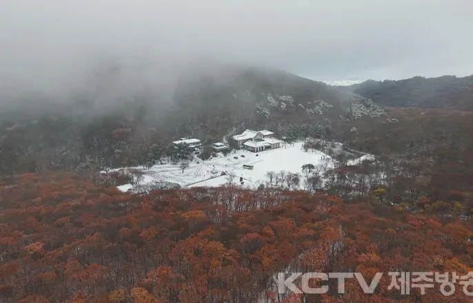 [앵커]기습추위가찾아오면서어제(18)한라산에는첫눈이내렸습니다.밤사이에도산지에는올가을첫대설특보가발효될만큼많은눈이내렸는데요.산간에내린하얀눈이단풍과어울어지며장관을연출했습니다.김경임기자의보도입니다.[리포트]가을색으로물든한라산어리목일대에흰눈이내렸습니다.차츰안개가걷히자,높은산지에숨겨져있던겨울왕국이모습을드러냅니다.나뭇가지마다눈꽃이얼어붙으며하룻밤사이설원으로변했습니다.새하얀눈과울긋불긋한단풍잎이대비를이루며한폭의그림같습니다.소복히눈이쌓인계곡을경계로계절이나누어지는듯합니다.<김경임기자>"밤사이산간에올가을첫대설주의보가발효돼산지에많은눈이내리면서장관을연출하고있습니다."기습추위와함께찾아온눈소식.높은산지를중심으로하루사이한라산에는10cm가넘는눈이내려쌓였습니다.겨울산행장비까지갖추고눈구경에나선탐방객들은들뜬마음을감추지못합니다.<정유진김용우/부산광역시>"처음으로한라산등반하러왔는데,제일쉬운코스라고해서왔는데눈이와서.저희가부산에살아서눈볼기회가없거든요.눈보니까너무좋고신기해요.그리고낙엽이랑눈이같이있는게정말신기했어요."<김인철/경기도구리시>"제주도여행삼아등산도할겸낚시도할겸왔는데,한라산등산을하려고왔는데눈까지와서엄청행복하고좋습니다."추위도잊은채눈밭을거닐고,언제다시볼지모를아름다운풍경을배경삼아사진을찍으며추억을남겨봅니다.<Hazelwan/중국인관광객>"저희는주로남쪽지역에서생활하다보니까남쪽에서온남방사람입장에서는이렇게많은눈을보는게정말신기하고너무감격스러웠어요.산아래는눈이거의없었는데올라오니까이렇게눈이많이쌓여있는걸보고정말깜짝놀랐습니다.첫느낌이너무압도적이었고.정말대단하다싶었어요."짧았던가을을지나겨울로넘어가는길목에서한라산에찾아온때이른설경은진풍경을선사했습니다.KCTV뉴스김경임입니다.Copyright©KCTV제주방송.무단전재및재배포금지.