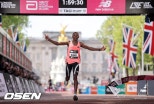 [사진]ⓒGettyimages(무단전재및재배포금지)[OSEN=강필주기자]인류의'마지막성역'으로불리던마라톤2시간의벽이마침내허물어졌다.사바스티안사웨(30,케냐)는26일(한국시간)영국런던에서열린2026런던마라톤남자부경기에서42.195km풀코스를1시간59분30초만에주파하며우승을차지했다.사웨는고(故)켈빈킵툼이지난2023년세운종전세계기록(2시간00분35초)을1분5초나앞당기며인류최초로'서브2(2시간이내완주)'를달성한선수가됐다.사웨는하프지점을1시간00분29초로통과하며힘을비축한뒤,30km지점급수대에서요미프케젤차(29,에티오피아)와함께치고나갔다.특히사웨는30~35km구간에서는5km를13분54초에주파하는폭발적인스피드를선보였다.[사진]ⓒGettyimages(무단전재및재배포금지)사웨의후반하프기록은무려59분01초였다.이는2019년엘리우드킵초게(42,케냐)가비공식이벤트에서세운기록보다도10초빠르다.사웨는일각에서제기될수있는도핑의혹에대해서도철저히대비했다.스폰서인아디다스는사웨의결백을증명하기위해선수통합관리기구(AIU)에5만파운드를지불하고정밀검사를요청했다.사웨는단몇주만에25번의검사를받았다.영국'가디언'에따르면사웨는결승선통과뒤가진인터뷰에서"기분이정말좋고행복하다.오늘은잊지못할날"이라며벅찬소감을전했다.[사진]ⓒGettyimages(무단전재및재배포금지)한편이번대회2위에오른케젤차(1시간59분41초)와3위우간다의제이콥키플리모(2시간00분28초)역시기존세계기록을넘어서는호성적을거뒀다.여자부에서도대기록이나왔다.티지스트아세파(30,에티오피아)가2시간15분41초로결승선을통과하며'여자선수전용레이스'세계신기록을세웠다.이는자신이지난해세운기록을9초단축한결과다.[사진]ⓒGettyimages(무단전재및재배포금지)/[email protected]