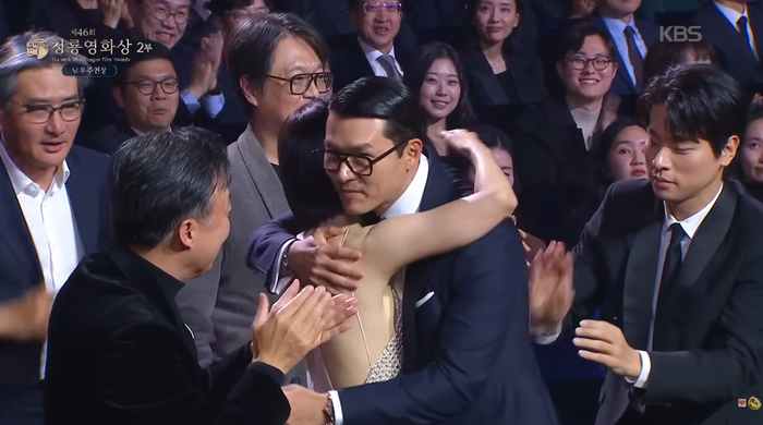 사진|KBS캡처[스포츠서울|최승섭기자]배우박정민이청룡영화상에서뜻밖의‘짠내폭발’신스틸러가됐다.19일서울영등포구여의도KBS홀에서개최된제46회청룡영화상.뜨거운관심속에진행된남우주연상부문에서현빈(하얼빈)이설경구(보통의가족),이병헌(어쩔수가없다),조정석(좀비딸),박정민(얼굴)등쟁쟁한후보들을제치고수상자로호명됐다.이름이불리자마자현빈은예상치못한듯놀란표정을감추지못했다.옆자리에앉아있던아내손예진역시함께자리에서일어나며남편의수상을진심으로축하했다.감격에젖은두사람은뜨거운진한포옹을나누며수상의기쁨을만끽했다.영화보다더영화같은,아름다운부부의모습에모두가박수를보내던바로그때!남우주연상후보로올랐으나수상의영광을놓친박정민이현빈의등을‘토닥토닥’두드렸다.마치“엄마랑아빠!둘만꽁냥거리지마세요!”라고외치는‘눈치없는아들’같은박정민의행동은시상식의긴장감을날리고훈훈한웃음을선사했다.현빈은손예진과의포옹을멈추고웃으며박정민을마주안아줬다.해당장면이각종SNS와온라인커뮤니티를통해빠르게퍼져나가면서누리꾼들은“박정민무관아쉬워도,신스틸러는인정!”,“현빈♥손예진포옹에끼어든박정민이오늘최고의웃음포인트”,“눈치없는아들같다ㅋㅋㅋ너무귀엽다”,“시상식비하인드역대급”등폭발적인반응을쏟아내고있다.박정민은수상하지는못했지만‘레전드짤’을남기며‘청룡의신스틸러’로등극하는순간이었다[email protected]©스포츠서울.무단전재및재배포금지.