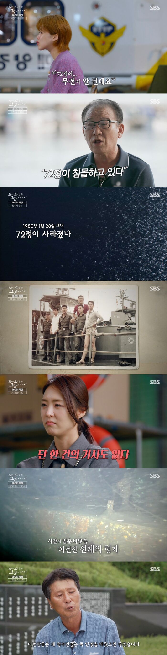 [SBS연예뉴스|김효정에디터]72정의승조원17명,무사히가족곁으로돌아올까?20일방송된SBS'꼬리에꼬리는무는그날이야기'(이하'꼬꼬무')에서는200회특집으로'72정은응답하라!'편을공개했다.1980년1월23일새벽5시,강원도속초부둣가에는긴급상황을알리는사이렌소리가울려퍼졌다.해양경찰의경비정72정이침몰하고있다는것.이에해경은필사의구조를시작한다.하지만조명탄불빛아래드러난수면위로는어느것도보이지않았고그렇게72정은감쪽같이사라졌다.그리고해양경찰9명,전투경찰8명,총17명의승조원이72정과함께실종되었다.전국각지에서전보를받은가족들은급하게속초로달려갔다.대부분20대,생사를전혀알지못하는상황에서해경은72정이충돌사고로사라졌다고밝혔다.3배정도무거운200톤급의경비함과충돌하며가라앉고말았던것.하지만가족들은이이야기를선뜻믿을수없었다.그러나얼마후구명벌이발견되었고이에72정이침몰했다는것을믿을수밖에없었다.이후대대적인수색작업을진행했으나업무일지가발견된것외에는무엇도찾을수없었고단한명의실종자도찾지못했다.거진항에서4.2km지점에침몰한배의연료가포착되고,유가족들은국화꽃을던지며돌아오지않는가족들을그리워해야했다.깊은수심으로인한인양의어려움으로72정에대한인양은불가능했고결국사고일주일후유해없이합동위령제가진행됐다.그렇게가족의버팀목이었고꿈많던청춘들은결국집으로돌아오지못했다.이후에도수색은계속되었지만성과는없었다.그런데놀랍게도이러한72정사건에대한보도는단1건도없었다.특히속초와거진일대에서도사건에대해아는사람이거의없어의아함을자아냈다.해당사건당시정부의언론통제로이러한사실이전혀드러나지않았던것.그렇게72정침몰사건은유가족들의슬픔만으로남아있었다.그런데37년이흐른2017년,세월호인양을지켜본유가족들은72정인양에대한희망을얻었고72정인양을촉구했다.유가족들에의해뒤늦게세상에알려진72정침몰사건.이에청와대에서도72정인양을검토하겠다는입장을밝혔다.그리고39년만에72정에대한재탐사를시작했고72정으로추정되는물체까지포착했다.이에유가족들은국회에72정인양에대해간절히호소했다.하지만국회예산안이전액삭감되며72정인양작업은진행되지않았다.2020년발생한코로나19로대응비용이급증하며다른예산안이대폭삭감되었던것.이듬해도예산안은통과하지못했고2025년현재에도72정은여전히차가운바닷속에있었다.그러나해양경찰은꾸준히현장조사를진행하며인양가능성을높이기위한자료를수집했다.이에꼬꼬무는200회특집으로6개월간의특별한프로젝트를준비했다.국내최고수준의기술력을가진ROV수중드론전문기업과수중탐사를위한대규모장비까지준비해현재의72정모습을직접확인해보기로한것.본격적인탐사전테스트를거치고지난8월해경의지원속72정침몰지점으로간꼬꼬무는3박4일간의수색에도72정의모습을담는것에실패했다.하지만1차탐사후확인한영상속72정으로추정되는물체가포착되었고이에PD는"72정찾기전까지는서울로돌아오지않겠다"라는다짐속에2차수중탐사를시작했다.그리고45년만에처음으로방송에서72정의모습을포착했다.원형이보존된상태의72정은측면으로기울어진채가라앉아있었다.그리고당초예상보다더깊은수심에가라앉아있는모습이포착되었다.45년간구조의손길을기다린것처럼그자리에그대로남아있던72정.이에방송은언젠가인양될72정의원활한인양을위해수중탐사영상원본을해경에제공했다.유가족중한명은"마지막까지도국가를위해희생한분들을국가에서책임을지는것이도리아닌가"라며유해한조각이라도품에안을수있게국가에서도와달라고호소했다.2017년,72정인양을촉구했던유가족들에게"72정인양에대한국민적공감대가부족하다"는지적이있었다.그러나72정침몰사건은알려질기회조차빼앗긴것이었다.이에방송은하루빨리72정인양을통해국민이국가를지키고국가를위해헌신할때국가는국민을위해무엇을해야하는가,그질문에대한올바른해답을찾을수있기를빌었다.72정승조원17명은국가유공자로등록된상태.하지만현충원묘역에안장되지못했다.이는유해가없으면안장불가하다는이유때문이었다.자신이못나서인양이이뤄지지않는것아닌가라며자책하는전유가족대표는결국유가족대표에서물러났다.그러면서그는"이번정부만큼은꼭인양을해줬으면"이라고애원했다.부디이들의바람대로72정인양으로머지않은날,17명의승조원들이가족들에게귀환신고를할수있기를.Copyright©CopyrightⓒSBS.Allrightsreserved.무단전재,재배포및AI학습이용금지