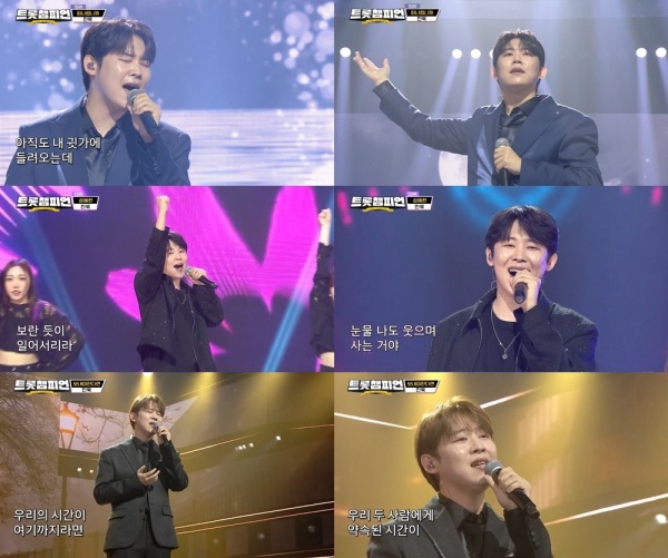 트롯챔피언진욱/사진=MBCON캡처[스포츠투데이정예원기자]가수진욱이최근음악방송에연이어출연해'무대장인'다운면모를유감없이뽐냈다.진욱은지난8월첫정규앨범'진욱더뉴비기닝'(진욱TheNewBeginning)발매후꾸준히음악방송에출연해'무대형아티스트'의진가를발휘중이다.특히매회서로다른매력을담아낸퍼포먼스로"무대마다새로운색을보여주는팔색조보컬리스트"라는반응을얻고있다.진욱은가장먼저이번정규앨범의트리플타이틀곡이자첫번째트랙인'떠나렵니까'로음악방송에나섰다.그는절제된감정선을바탕으로섬세한표현력을선보이며시청자들을몰입시켰다.디테일하게조절된손끝과시선,후반부로갈수록폭발하는성량은'감성장인'이라는수식어를굳히게만들었다.수록곡'삼세판'을통해서는반전매력을발산했다.진욱은리드미컬한박자감과자연스러운스텝,중독성강한후렴까지더하며에너지넘치는무대를완성했다.여유로운라이브실력으로안무와가창을모두소화해낸그는"흥까지되는보컬리스트"라는새로운평가를이끌어냈다.또다른타이틀곡'보내야한다면'무대를통해서는감성의깊이를한층확장시켰다.진욱은절제와폭발을균형있게조절하며분위기를장악했다.표정과눈빛만으로노랫말의서사를전달하는감정연출,흔들림없는호흡과단단한발성은시청자들에게"기술과감성이완성된무대"라는호평을받았다.이처럼진욱은첫정규앨범발표이후서로다른결의무대를연달아선보이며음악적스펙트럼을확실히넓혀가고있다.섬세한감정표현부터에너지넘치는퍼포먼스까지폭넓게소화하며'완성형보컬리스트'로서의입지를공고히하고있다는평가다.무대를거듭할수록한층진화한면모를보여주고있는진욱이앞으로어떤새로운색으로자신의음악세계를확장해나갈지기대감이높아지고있다.[스포츠투데이정예원기자[email protected]]Copyright©스포츠투데이.무단전재및재배포금지.