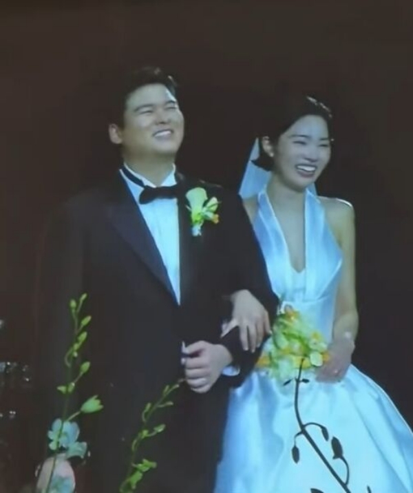 이장우,조혜원/사진=SNS[스포츠투데이김태형기자]배우이장우,조혜원이7년열애끝에부부의연을맺었다.23일이장우와조혜원은서울송파구잠실롯데호텔월드에서양가가족과지인들이참석한가운데비공개결혼식을올렸다.주례는전현무,사회는기안84가맡았다.축가는이장우의사촌형인환희와뮤지컬배우민우혁,한지상이불렀다.사진=황재균SNS결혼식현장은두사람의지인들을통해공개됐다.야구선수황재균은자신의SNS스토리에사회를보고있는기안84의모습,긴장한기색이역력한전현무의모습,영화'쿵푸팬더'OST'쿵푸파이팅(KungFuFighting)'에맞춰등장하는신랑이장우의모습이담긴영상을올렸다.사진=이세미SNS쇼호스트이세미는SNS스토리에"너무좋아"라는글과함께활짝웃고있는신부조혜원의사진을게재했다.조혜원은홀터넥웨딩드레스를입고아름다움을뽐냈다.또한환희는축가로'씨오브러브(SeaOfLove)'를불렀다.한편서울경제에따르면이장우와조혜원은하객들을위한특별한의미를담은선물을준비했다.답례품은이장우가홍보모델로활동한호두과자제품이었다.포장박스겉면에는환하게웃는이장우·조혜원의일러스트가그려져있었다.이장우와조혜원은2018년방송된KBS2드라마'하나뿐인내편'을통해인연을맺었다.2023년6월부터공개열애를시작,8살나이차이를극복하고연인으로발전했다.두사람은결혼식을끝내고당장올해는신혼여행을떠나지않기로했다.대신서로의일에집중하면서달달한신혼을즐길예정이다.[스포츠투데이김태형기자[email protected]]Copyright©스포츠투데이.무단전재및재배포금지.
