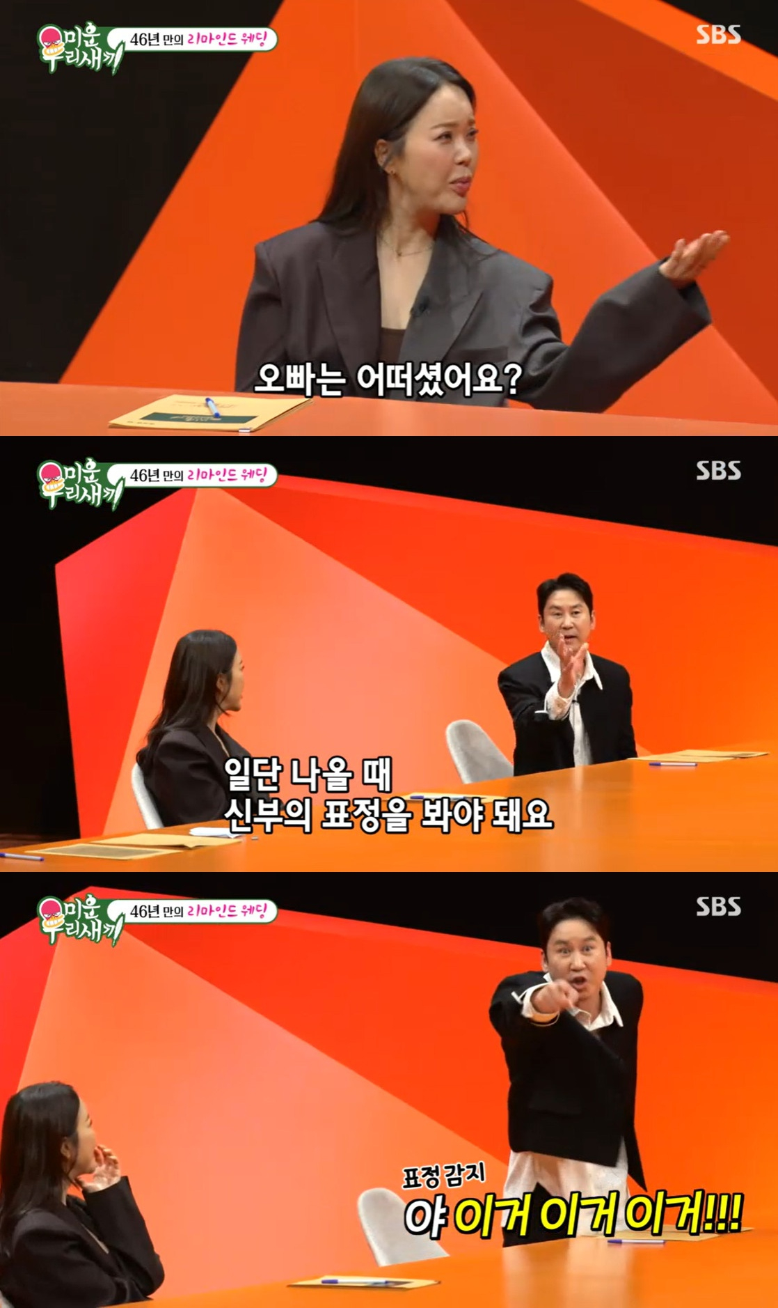 [스타뉴스|안윤지기자]/사진=SBS'미운우리새끼'방송캡처'미우새'방송인신동엽이과거아내이자PD선혜윤과결혼했을당시를언급했다.23일방송된SBS'미운우리새끼'(이하'미우새')에서는이동건이게스트로출연했다.이날이동건이부모님을위한리마인드웨딩을준비했다.드레스숍을본백지영은"난드레스를못보고결혼식에가니까기분이묘하더라.오빠는어땠나"라고신동엽에게물었다.신동엽은"나야뭐...30대후반에결혼했기때문에얘기도많이했다.일단나올때신부의표정을봐야한다.본인이마음에들때하는미세한표정이있다"라며"딱보고뭔가좋긴한데그냥하면적당히.그러다'야이거이거'라고했다.매번달라야한다.별의별쇼를다해야한다"라고해웃음을자아냈다.한편'미우새'는매주일요일오후9시에방송된다.안윤지기자[email protected]©스타뉴스&starnewskorea.com,무단전재및재배포금지