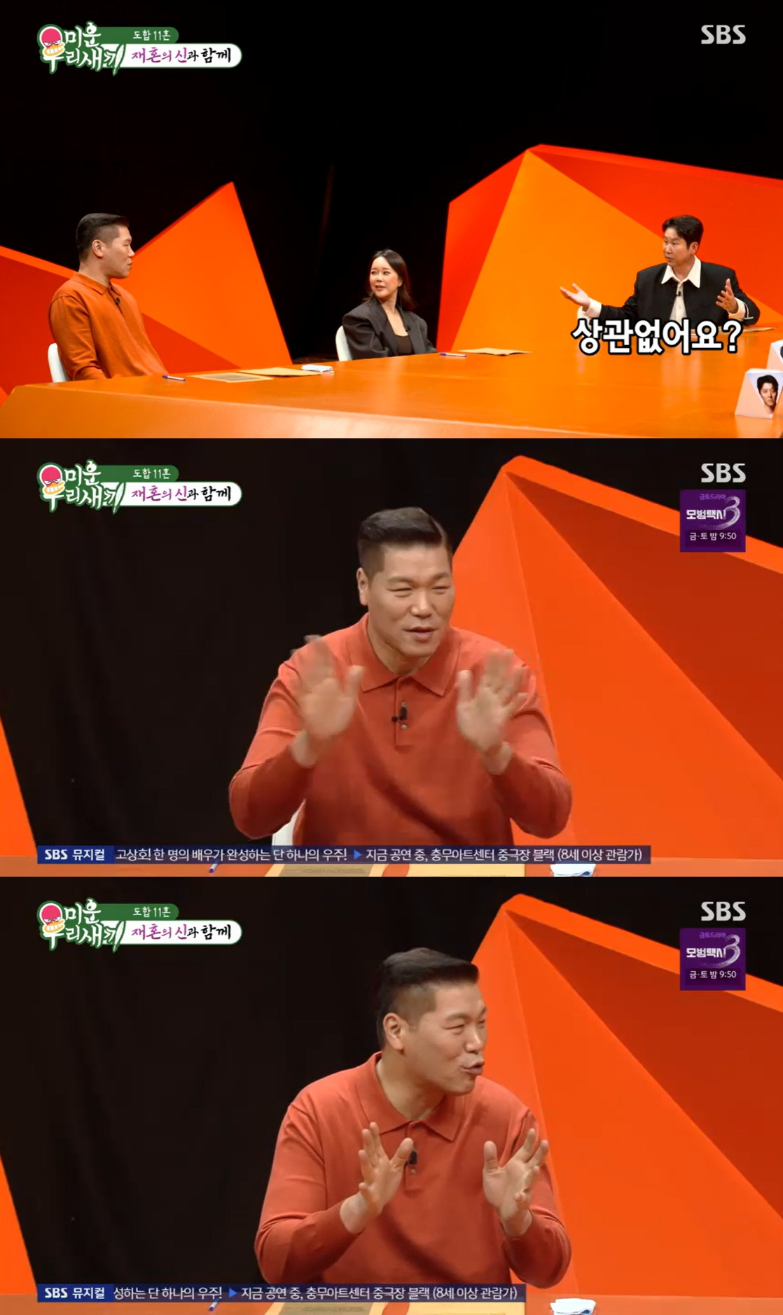 [스타뉴스|안윤지기자]/사진=SBS'미운우리새끼'방송캡처'미우새'방송인서장훈이재혼에대한의지를보였다.23일방송된SBS'미운우리새끼'(이하'미우새')에서는김준호와임원희의결혼수업이공개됐다.신동엽은"너무괜찮은사람을만나서재혼하려고했는데공교롭게도그분은삼혼이라면?"이라고물었다.이에서장훈은"상관있다.요즘그런생각한다.나이가들고그러니그렇게어려운길을안가고싶다"라면서도"(재혼이든)중요하지않은데.."라고했다.그러자신동엽은"오케이.난무조건초혼과갈거야"라고장난쳤다.이날박영규,엄영수등의재혼조언이이어지자,서장훈은"잘들어야한다"라며의지를불태웠다.한편'미우새'는매주일요일오후9시에방송된다.안윤지기자[email protected]©스타뉴스&starnewskorea.com,무단전재및재배포금지