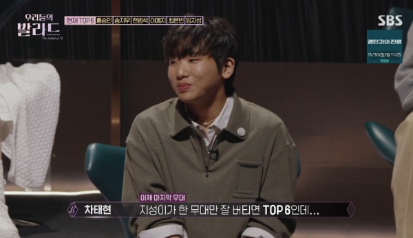 우리들의발라드/사진=SBS캡처[스포츠투데이정예원기자]'우리들의발라드'임지성이자리를지킬수있을까.25일방송된SBS'우리들의발라드'에서는TOP6를가릴발라드열전이그려졌다.우리들의발라드/사진=SBS캡처이날'괴물급참가자'이예지는이승철의'말리꽃'을선곡했다.그는"어릴적부터아빠,할머니와살았다.아빠가혼자일하면서힘드셨을텐데'너하고싶은것해라'라며지원을많이해주셨다"고감사함을표하며아버지가떠오르는'말리꽃'을폭발적인가창력으로불렀다.박경림은"첫음을너무높게잡은거아닌가했는데계속올라가더라",정재형은"방랑자같은길을가도응원할것"등긍정적인평가를건넸다.이예지는4위로TOP6좌석에앉게됐다.이예지에게밀려7위로떨어진민수현은마지막소감을전하며퇴장했다.6위가된임지성은긴장감을드러내며연신초조해했다.차태현또한"지성이가한무대만잘버티면TOP6인데"라며걱정했다.[스포츠투데이정예원기자[email protected]]Copyright©스포츠투데이.무단전재및재배포금지.