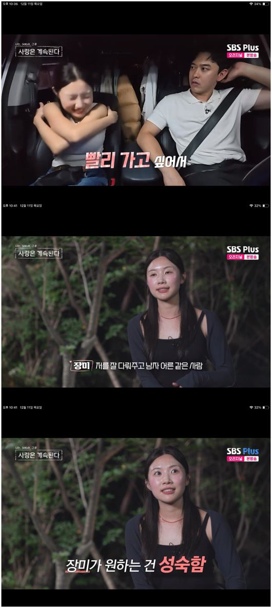 ⓒENA,SBSPlus'나는솔로,그후사랑은계속된다'[스포츠한국신영선기자]'나솔사계'27기영식이장미의미묘한태도변화에최종선택을받지못할까주눅이들었다.11일방송된ENA,SBSPlus'나는솔로,그후사랑은계속된다'에서는27기영식,장미의1:1데이트가그려졌다.이날27기영식은장미에게다음날집까지태워주겠다고말했지만장미는차를타면이동시간이길어진다며용담과함께KTX를타고가겠다고했다.27기영식은장미의말에당황한듯한표정을지었지만이내"하고싶은대로하라"며"나는알아서눈치안보고올라가겠다"고쿨하게보이려했다.식당에서장미는음식을그릇에담아주겠다는영식에게"아니,내가떠서먹어도될까?"라며거절했다.27기영식은"그래,하고싶은대로해"라고말하면서도씁쓸한표정을지었고장미의눈치를보며주눅든모습을보였다.장미는인터뷰에서"다섯남자중에선택은쉬웠는데내가원하는이상향이그게아닌사람같은거다"라며27기영식에대한아쉬움을털어놨다.그는이상형이"저를잘다뤄주고남자어른같은사람"이라며"전능숙한사람을좋아하는데(27기영식은)능숙한스타일이아닌것같다"고밝혔다.밤이되고27기영식은장미를불러내대화를신청했다.장미는"어떤부분에서는남자답게확끌어줘서휘감아주면휘감겨가고싶은데그런걸확느끼진못했다"며속마음을솔직하게털어놨다.27기영식은"뭘돌려말하냐.아니다,이거야?"라며빠르게결론을내리려했고,깜짝놀란장미는"아닌건아니고이런부분이고민이란걸얘기하고싶었다"며서둘러진화에나섰다.27기영식은"우리가3일밖에안돼서아무래도조심스러운면이가장크다"면서"네가원하는사람의모습에100%는난아닌것같다.나에대해잘모르겠지만난추진력하나는있는사람이다.그추진력을발휘하는게맞는지판단하는데나도시간이필요하다"고설명했다.이에장미는최종선택을앞두고부담감이들었다며"(나가서)알아가는시간이필요하다"고밝혔다.최종선택을하면곧바로사귀는줄알았던장미는27기영식이"당연하다.최종선택한다고바로사귀는건아니다"라고하자고민이해결된듯편한얼굴이됐다.스포츠한국신영선기자[email protected]©스포츠한국.무단전재및재배포금지.