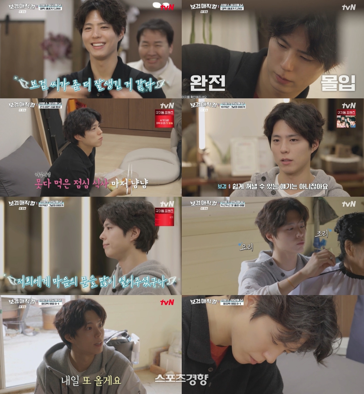 박보검이출연하는‘보검매직컬’.tvN제공배우박보검이시골이발사로마지막을준비했다.소속사더블랙레이블은tvN예능‘보검매직컬’은28일방송에서박보검의첫출장이발과영업종료하루전일지기록장면을담았다고이날밝혔다.‘보검매직컬’은이용사국가자격증을보유한박보검과곽동연,이상이가외딴시골마을에서이발소를운영하는내용의프로그램으로,연출은손수정PD가맡고있다.이날방송에서박보검은10대청소년손님들을맞아스타일링과함께인생조언을건넸다.대학입학을앞둔남학생손님에게는학교프로그램을활용한자신의경험을들려줬다.손님들을보낸뒤박보검,곽동연,이상이와일일아르바이트생김소현은함께식사하며박보검의일화를화제에올렸다.긍정적태도와언어습관에대한이야기가오갔으며,박보검은동료들의칭찬에화답했다.출장이발장면도그려졌다.거동이불편한할머니손님을위해직접도구를챙겨가정을방문한박보검은현관앞에거울과의자를놓아간이이발소를꾸렸다.자신의이름을발음하기어려워하는할머니를위해‘박보금’이라는발음으로소개하며다가갔다.시술을마친뒤박보검은할머니를안아주며작별했다.영업종료일이가까워지면서마을주민들과의교류도이어졌다.염색시술후즉흥으로저녁식사에초대된박보검일행은할머니가차린집밥을함께했다.차마꺼내기힘든아픈기억을털어놓은할머니손님의이야기에박보검은귀를기울이며감사를표했다.하루를마친박보검은그동안의영업기록을일지에정리하며마지막영업일을준비했다.tvN‘보검매직컬’의마지막회는다음주금요일밤8시35분에방영된다.이선명기자[email protected]©스포츠경향.무단전재및재배포금지.