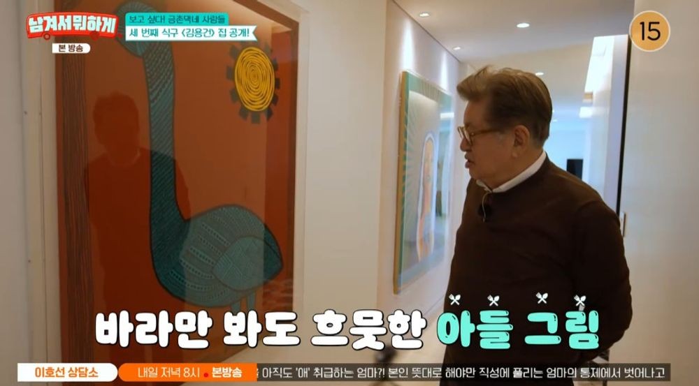 [TV리포트=이혜미기자]배우김용건이갤러리를방불케하는한강뷰아파트를공개했다.30일tvNSTORY'남겨서뭐하게'에선김용건정선희임창정이게스트로출연해입담을뽐냈다.이들은지난1995년전파를탄'금촌댁네사람들'의주역들이다.이날김용건의집이공개된가운데그의집은한강뷰를품은시티하우스로세련되면서널찍한공간을자랑했다.김용건은두아들하정우,김영훈과함께한가족사진은물론김영훈과며느리황보라의결혼사진을거실한편에장식하며남다른가족애를뽐냈다.서재곳곳에3살하정우의모습이담긴사진을둔그는"반세기가된사진이라빛이바랬다.원래는컬러가더선명했다.가끔씩서재에들어와서이사진들을본다"며아들사랑을전했다.김용건의집복도엔하정우의작품들도전시돼있었다.하정우는현재배우겸화가로활동중으로김용건은그의전시회가열릴때마다직접참석해응원을보냈던터.하정우가10년전LA에서그렸다는그림에이르러김용건은"이건내가너무마음에들어서카카오톡프로필화면으로설정해놨다"고말했다.한편이날하정우는'금촌댁네사람들'동료들과의재회에앞서"이렇게초대해주시니감사하다.이영자덕분에연결이된것같다"며설렘을나타냈다.김용건과이영자는'금촌댁네사람들'에서부부호흡을맞춘사이.김용건의등장에눈물을터뜨린이영자는"김선생님은정말든든한분이었다.선생님이우리눈높이에맞춰짓궂게장난을쳐주셨던것들이너무좋았다"며반가움을표했다.정선희역시"까무러칠정도로좋았다.선생님의뒷모습에개구진에너지가다담겨있었다.피터팬을다시본느낌이었다"며행복해했다.이들은'금촌댁네사람들'의촬영지였던'금촌댁'도방문했다.'영자씨'와재회후옛추억이그대로남은공간을둘러보던출연자들은집주인아버님과도재회했다.이자리에서그는"이렇게잊지않고찾아줘서고맙다"고인사를전하곤이영자에대해"아주마음넓은여장부였다.내가잊지않는다"며애정을전했다.이혜미기자/사진='남겨서뭐하게'방송화면캡처Copyright©TV리포트.무단전재및재배포금지