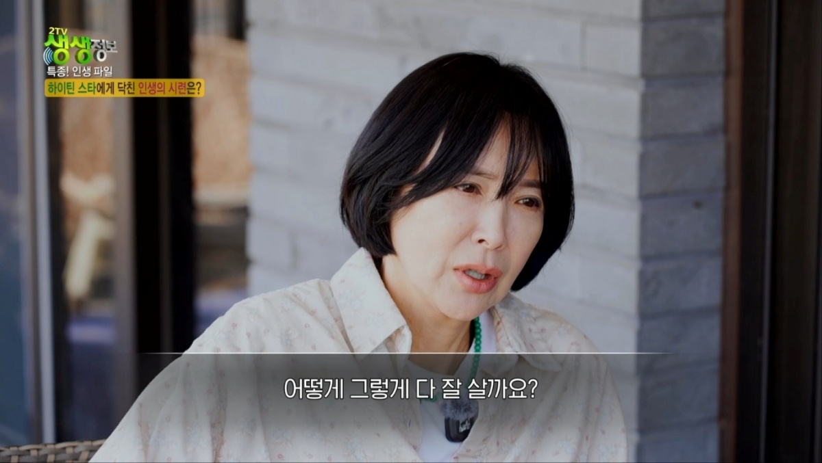 사진=KBS2TV방송화면(엑스포츠뉴스김수아기자)배우이상아가3번의이혼을겪은심경을털어놨다.1일방송된KBS'2TV생생정보'에는원조책받침여신이상아가출연해근황을전했다.이날반려견들과의일상을공개한뒤이상아는'책받침여신'이라불렸던전성기시절의기록을꺼냈다.배우이상아,첫번째결혼발표이때일반인남자친구와찍힌열애설기사가등장했고,해당기사로인해바로헤어졌던아픈과거를털어놨다.26살,인기의절정에돌연결혼을발표했던이상아는"하이틴배우들이주부역할로변하는시기였다.저도그때결혼하면어렸던이미지가성숙한배우로변할수있겠다는생각이있었다"고설명했다.그러나1년만에이혼했다.이상아는"(결혼생활을)열심히했는데집도다날렸다.남는것도없었다.방송도장사도다열심히했는데결국은"이라고토로했다.'2TV생생정보'이상아출연이후무려세번의이혼을겪은그는"짜증난다.어떻게다들잘살까요?"라며"가장슬펐던게,세번째까지그꿈을못이뤘다.그쉬운(가족이라는)그림이나한테는하나도없었을까.이부분이화가난다"고솔직한심경을전했다."왜그간단한걸나는못하고있지?되게어려운거구나"라고털어놓은그는유일하게얻은딸덕분에힘든시기를버틸수있었다고애틋함을드러내며눈시울을붉혔다.사진=KBS2TV방송화면김수아기자[email protected]©엑스포츠뉴스.무단전재및재배포금지.
