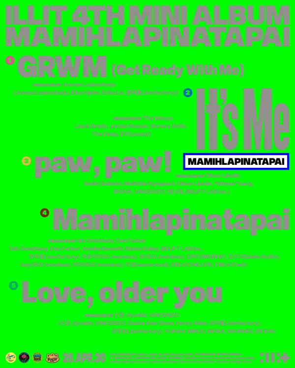 사진=빌리프랩[스포츠투데이윤혜영기자]그룹아일릿(ILLIT)이1020세대의공감을유발하는신보로한층진화한‘아일릿코어’를선보인다.아일릿(윤아,민주,모카,원희,이로하)은31일정오하이브레이블즈유튜브채널에미니4집‘마밀라피나타파이’(MAMIHLAPINATAPAI)의트랙리스트를공개했다.이에따르면신보에는타이틀곡‘It’sMe’를포함해‘GRWM(GetReadyWithMe)’,‘paw,paw!’,‘Mamihlapinatapai’,‘Love,olderyou’등총5곡이실린다.‘It’sMe’는첫데이트이후좋아하는상대와관계정의에대한고민이깊어지는찰나,“너의최애는바로나야!”라고당돌하게외치는노래다.이곡은개성강한싱어송라이터유라(youra)와더딥(TheDeep)이작사에참여해아일릿의당찬매력을극대화했다.싱글1집타이틀곡‘NOTCUTEANYMORE’에서독특한가사로아일릿특유의엉뚱발랄함을감각적으로풀어내호평받은유라가멤버들과다시만나일으킬시너지에기대가모인다.트랙전반에동세대의관심사와정서가투영돼있다.너와함께민낯으로속마음을나누는내밀한순간을그린‘GRWM(GetReadyWithMe)’,사랑하는반려동물을향한애틋함을담은‘paw,paw!’가듣는이들의공감을자극할전망이다.‘paw,paw!’는멤버이로하가데뷔후처음으로작사에참여,자신의경험담을녹여진솔한노랫말을썼다.여기에하이브방시혁의장(“hitman”bang)이힘을보태섬세한감정선을만들며곡의완성도를높였다.또한수많은선택과책임앞에서‘게으른완벽주의자’가되어버린동시대청년들에게아일릿이전하는곡‘Mamihlapinatapai’,힘들고포기하고싶은순간들이있던어린시절의나에게보내는편지같은곡‘Love,olderyou’가앨범을풍성하게채운다.특히‘Love,olderyou’는다섯멤버의실제이야기를담아아일릿만의독보적인감성을예고했다.한편이번트랙리스트는모션포스터형태로제작돼시각적으로도강렬한인상을남겼다.DVD화면보호기에서영감을얻은포스터는화면안을부유하는앨범로고가벽면에충돌할때마다색상이전환되는연출이포인트다.아일릿의다채로운콘셉트와폭넓은음악스펙트럼을직관적으로구현한디자인이신보에흥미를더한다.아일릿의미니4집‘마밀라피나타파이’는4월30일발매된다.[스포츠투데이윤혜영기자[email protected]]Copyright©스포츠투데이.무단전재및재배포금지.