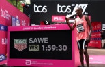 ⓒ연합뉴스인간의한계로여겨지던마라톤2시간의벽이마침내깨졌다.26일(한국시각)영국런던에서열린2026런던마라톤남자부에서케냐국적의사바스티안사웨가42.195㎞를1시간59분30초에주파하며우승했다.공인대회에서2시간이내기록이나온것은이번이처음이다.2위요미프케젤차(에티오피아)역시1시간59분41초를기록하며한대회에서2시간이전에풀코스를주파한선수가두명이나탄생했다.2시간0분28초의3위제이컵키플리모(우간다)도이대회가열리기전까지인류가갖고있던세계기록보다더빠른기록을보였다.종전세계기록은켈빈킵툼이2023년시카고마라톤에서세운2시간0분35초였다마라톤2시간의벽은오랫동안인류가극복하기불가능한영역으로여겨져왔다.엘리우드킵초게가2019년오스트리아빈에서1시간59분40초를기록했으나이는비공식이벤트였던탓에공인기록으로인정되지않았다.1996년3월16일케냐의리프트벨리에서태어난사웨는할머니손에서자라면서어린시절달리기를접했다.그는다른케냐선수들처럼고지대에서훈련하며중거리선수출신인삼촌에게전문적인지도를받았다.사웨는"인간에게한계가없다는것을증명해기쁘다"라며"오늘은내게잊지못할하루가될것"이라고밝혔다.한편여자부에서는에티오피아의티그스트아세파가2시간15분41초로여자부세계신기록을경신하며우승했다.