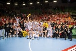 헝가리남자핸드볼의절대강자베스프렘(OneVeszprémHC)이터터바녀를압도하며다시한번헝가리컵정상에우뚝섰다.베스프렘은지난19일(현지시간)헝가리교리의아우디아레나에서열린2025/26헝가리남자핸드볼컵결승전에서MOL터터바녀(MOLTatabánya)를34-22로꺾고우승트로피를들어올렸다.경기초반베스프렘은야니스레네(YanisLenne),이반마르티노비치(IvanMartinovic),비아르키마르엘리손(BjarkiMárElísson)의연속득점에힘입어5분만에3-0으로앞서나갔다.사진2025/26헝가리남자핸드볼컵우승을차지한베스프렘,사진출처=베스프렘하지만터터바녀의반격도만만치않았다.베스프렘의전설적인스타에디트에일레스의아들인베네데크에일레스(BenedekÉles)가빠른득점으로동점을만들었고,이과정에서베스프렘의핵심전력인마르티노비치가충돌후부상으로쓰러지는아찔한상황이발생했다.터터바녀는이틈을타5-4로잠시역전에성공했지만,그것이이번경기터터바녀의처음이자마지막리드였다.부상을털고코트에복귀한이반마르티노비치가역전골을터뜨리며분위기를가져왔고,골키퍼미카엘아펠그렌(MikaelAppelgren)의눈부신선방쇼가이어졌다.특히이번대회MVP로선정된비아르키마르엘리손은전반에만5골을몰아치며전반을15-10으로마치는데일조했다.후반전에도베스프렘의기세는꺾이지않았다.패트릭리겟바리(PatrikLigetvári)는강력한수비로상대공격을차단했고,수문장아펠그렌은연이은‘슈퍼세이브’로관중석의연호을끌어냈다.경기막판에는가스페르마르구치(GasperMarguc)와예히아엘데라(YehiaElDeraa)까지득점에가세하며점수차를10점차이상으로벌렸다.결국베스프렘은최종스코어34-22로경기를마무리하며통산32번째헝가리컵우승이라는대기록을달성했다.사비파스쿠알(XaviPascual)베스프렘감독은구단홈페이지를통해“매우훌륭한경기였다.특히수비에서완벽한모습을보였다.우리팀이오늘처럼만경기를풀어간다면그어떤팀도우리를꺾기힘들것이다.우승해서정말기쁘다”라고우승소감을전했다.이반마르티노비치베스프렘라이트백은“우승트로피를얻기위해베스프렘에왔고,이제첫번째목표를이뤘다.다행히부상이심하지않아코트로돌아와골을넣을수있어기쁘다.잠시우승을만끽하겠지만,이제한순간도방심할수없는시즌의중요한시기가다가오고있다”고말했다.[김용필MK스포츠기자]