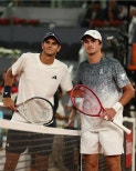 -마드리드ATP마스터스100032강전-2시간8분접전,7-6(7-4),4-6,6-1승리3라운드전라파엘호다르(왼쪽)와주앙폰세카.ATP투어[김경무기자]ATP투어의19세'차세대스타'끼리의블록버스터급맞대결에서스페인의라파엘호다르가승리했다.세계랭킹42위인호다르는26일(현지시간)마놀로산타나스타디움에서열린2026마드리드오픈(ATP마스터스1000&WTA1000)남자단식3라운드(32강전)에서31위주앙폰세카(브라질)까지7-6(7-4),4-6,6-1로무너뜨리고돌풍을이어갔다.앞선2라운드에서호다르는세계랭킹8위알렉스드미노(27·호주)를6-3,6-1로완파하며톱10상대첫승리를거둔바있다.'흙신'라파엘나달이그의우상으로별명도라파(Rafa)인호다르는이번대회와일드카드로출전해4라운드(16강)에오르며스페인의새희망임을다시한번보여줬다.특히앞으로'빅2'(야닉시너+카를로스알카라스)를위협할'제3의선수'로떠오른폰세카를맞아2시간8분동안의접전끝에승리했기에기쁨은더했다.이번경기는ATP단식랭킹톱100안에포함된두명의10대선수간맞대결로더욱관심을끌었다.2026마드리드ATP마스터스1000에와일드카드로출전해16강에오른라파엘호다르.ATP투어호다르는4라운드에서세계66위비트코프리바(28·체코)와격돌하는데,이길경우세계1위야닉시너(24·이탈리아)와만날가능성이높다.그러면당대최고스타와차세대스타의블록버스터급맞대결이성사된다.시너는이날3라운드에서세계169위엘메르몰러(22·덴마크)를6-2,6-3으로물리치고16강에안착했다.그의16강전상대는세계23위카메론노리(30·영국)다. 시너는호다르가혜성처럼등장하자,실제이번대회호다르의2라운드경기를스탠드에서직접지켜보기도했다.ATP투어에따르면,경기초반부터마드리드관중은열광적인분위기속에서호다르와폰세카의강력한스트로크대결에환호했다.1세트에서는두선수팽팽하게맞섰는데,타이브레이크에서폰세카가포핸드실수3개로흔들리며결국호다르가승리했다.그러나폰세카는2세트초반호다르의서브를브레이크하며반격에나섰고놀라운포핸드패싱샷을성공시키는등기세를올리며결국6-4로이겼다.호다르승리의세리머니.ATP투어마지막3세트에서흐름은완전히바뀌었다.호다르는초반브레이크에성공하며게임스코어5-0까지앞서나갔다.폰세카는감정을주체하지못하고라켓을내리치며강한불만을드러내기도했다.결국호다르가놀라운경기력을유지하며ATP마스터스1000에서생애처음으로16강에진출했다.호다르는지난5일마라케시ATP250에서정규투어첫우승감격을맛봤고,이어진바르셀로나ATP500에서는4강전까지올랐다가당시세계30위이던아르튀르피스(21·프랑스)에게3세트접전끝에석패했다(6-3,3-6,2-6).이대회에서는피스가챔피언이됐다.1년전이시기,호다르는세계687위였으며미국버지니아대학교에서활약중이었다.흥미롭게도폰세카역시한때이대학교진학을고려했지만,2024년2월프로전향을선택했다.폰세카는지난2024넥스트제너레이션ATP파이널우승자이며,지난해부에노스아이레스ATP250에서정규투어첫타이틀을거머쥐었고,바젤ATP500에서도우승한바있다.주앙폰세카.ATP투어[기사제보[email protected]]