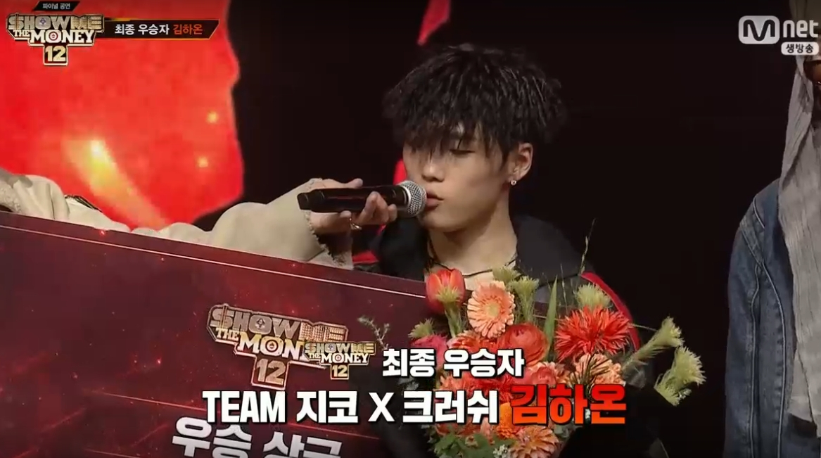 /사진=Mnet'쇼미더머니12'방송화면캡처래퍼김하온이'쇼미더머니12'(이하'쇼미12')우승을차지했다.지난2일오후생방송으로펼쳐진Mnet'쇼미12'최종회에서는우승을위한마지막관문인파이널무대가공개됐다.이날지코X크러쉬팀의김하온은나우아임영,메이슨홈,밀리,트레이비등을제치고1위를차지했다.김하온은현장평가단투표와실시간문자투표모두1위에올랐다.최종순위2위는나우아임영,3위는트레이비,4위는밀리,5위는메이슨홈이었다./사진=Mnet'쇼미더머니12'방송화면캡처김하온은"제가'쇼미12'에나오기로한이후로지금이순간만이제시나리오에있었다"며"우여곡절끝에여기까지오게해준지코,크러쉬형에게영광을돌린다"고우승소감을밝혔다.이어현장에온부모님을언급하며"보러와주신엄마,아빠사랑한다.집에있는형도사랑한다.앞으로저의행보를지켜봐달라"고애정을드러냈다.그는자신이받은우승꽃다발을부모님께건넸다.그러면서"18살짜리가자퇴한다고까불때부터마음고생이많았을텐데걱정하지마시고앞으로도아들을믿어달라.사랑한다"고덧붙였다.김하온은'쇼미12'최종우승을차지하며상금1억원의주인공이됐다.차유채기자[email protected]©머니투데이&mt.co.kr.무단전재및재배포,AI학습이용금지.