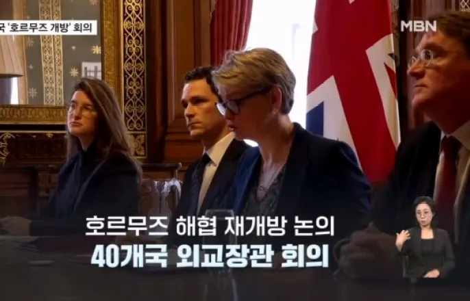 【앵커멘트】시청자여러분안녕하십니까?밤사이우리나라등전세계40여개나라가호르무즈해협개방방안을모색하는외교장관회의를열었습니다.각국장관들은이란이봉쇄한호르무즈해협에선원2만여명의발이묶여있다며'항행의자유'가필요하다고목소리를높였는데요.이번회의에미국은불참했습니다.오늘굿모닝MBN첫소식은강재묵기자가보도합니다.【기자】영국정부주도아래열린외교장관회의.우리나라를포함한40개국외교장관이호르무즈해협문제를논의하기위해화상회의에참여했습니다.▶인터뷰:이베트쿠퍼/영국외무장관-"이란이국제해상운송로를장악함으로써세계경제를인질삼아위협하고있는상황이이어지고있습니다."쿠퍼영국외무장관은현재까지25건이상의선박공격이발생했고,약2천척의선박과2만명의선원이해협에고립돼있다며,호르무즈해협을개방하기위한모든경제적·외교적수단을모색하겠다고밝혔습니다.이란이호르무즈해협을통과하는선박에배럴당1달러수준의통행료를요구하기로한데대해대응에나선것입니다.실제이란은이미오만과협력해호르무즈해협의선박통행을감시하기위한규칙을만들고있다고밝혔습니다.이번회의에는나토주요국과걸프국가등이대거참여했지만,미국은불참했습니다.▶인터뷰:도널드트럼프/미국대통령-"호르무즈를통해석유를들여오는나라들이직접그통로를책임져야합니다.미국의석유를사십시오.우리에게는물량이넘쳐납니다."사실상호르무즈해협개방문제를동맹국들에게떠넘겼단평가가나오는가운데,이번전쟁의여파로전세계석유공급이수요대비10%부족해졌다는분석도나왔습니다.MBN뉴스강재묵입니다.[[email protected]]영상편집:유수진그래픽:전성현Copyright©MBN.무단전재,재배포및AI학습이용금지.