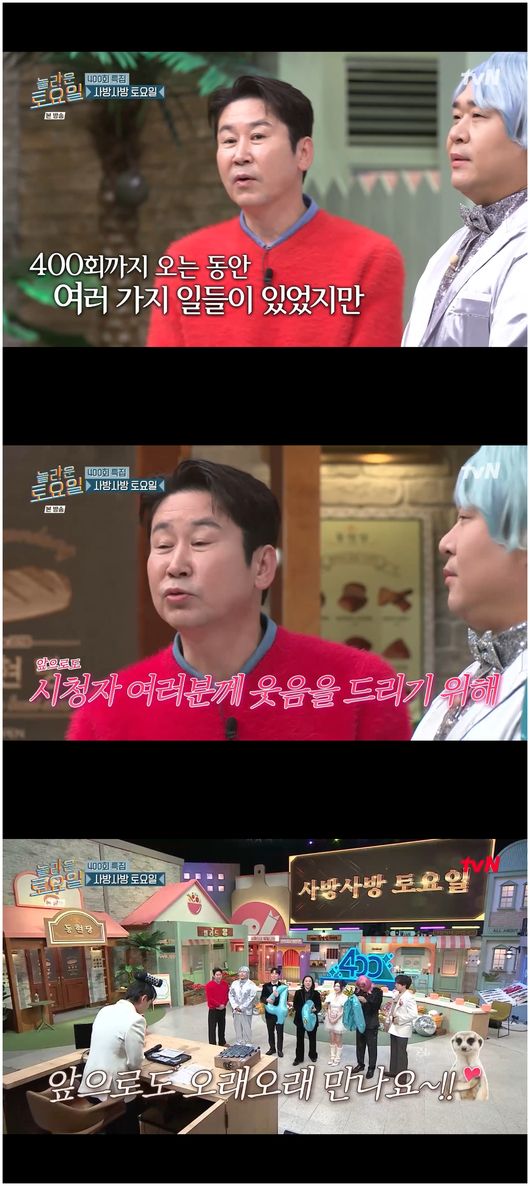 <리뷰:방송시청후작성된리뷰기사입니다.>[OSEN=오세진기자]‘놀라운토요일'400회특집을맞이해도레미멤버들이저마다소감을전했다.10일방영된tvN예능‘놀라운토요일’(이하'놀토')에서는400회특집을맞이해특별한게스트가등장했다.허경환,효연,레이,원희는각세대를대표하는게스트로등장했다.최근수많은유행어로다시한번붐을일으키는중인허경환은“남의축제를지켜보는동안씁쓸했다.400회되는동안저는3회밖에출연하지못했다”라며“그래서오늘제가따끔하게한마디하려다가,유행어를바꿨다”라고말했다.그는40대대표로10대,20대인레이와원희의멘트를잘알아듣지못하는모습을보이기도했다.붐은“놀토랑에너지가좀다르셔서”라며허경환을옹호했다.붐은“태연한테확인하고싶다는게있는데,직접물어보면되는거아니냐”라며효연의출연이유를물었다.효연은“태연은놀토에와야만날수있다”라며“제유튜브에서‘태티서’처럼‘효리수’를한다고했다.효연,수영,유리이렇게다.제가태연역할을한다고했다.멤버들은‘네가왜태연이냐’,‘재밌겠다’라고하는데태연이는한마디도없었다”라고말했다.당시티파니는"태연이의견은물어봤냐"라며웃었다.태연은“보긴봤는데,자기들만의리그같은느낌이었다”라며웃음을유발하더니"효리수응원한다"라며훈훈하게마무리했다.붐은“이제동현이가필요없다는데”라며레이의출연을반겼다.레이는“제가진짜원희팬이다.저희가기니피그동물닮았다고원희랑기니자매라고한다.기니,아니원희나온다고해서”라며레이와다정한기니자매로이번화내내활약했다.원희는“오늘은안귀여운,진짜멋있는기니오빠할거다”라며멋진모습을뽐냈다.400회를맞이했지만입짧은햇님의자리는채워지지않았다.대신룰은바뀌었다.원샷을차지한사람이왕좌에앉아한입을먹을수있는기회를얻는것이었다.영광스러운첫원샷은바로한해였다.한해는“400회특집원샷은정말의미있다”라면서“나는이런거안해봤다.한입만,이런거처음이다”라며떨리는모습을보였다.한편신동엽은장수프로그램이된'놀라운토요일'에대한소회를밝혔다.신동엽은“장수프로그램이있다는건축하할일이다”라면서“400회올때까지여러가지일이이었지만,시청자여러분께진심으로감사하다.앞으로잘부탁드린다”라고말했다.최근키,박나래,입짧은햇님은논란을의식하고하차의사를밝혔다.또한붐은둘째를임신,딸이라고밝히며젠더리빌파티까지열어큰환호를받았다.붐은"딸부잣집이다.첫째도딸이다"라며함박웃음을안겼다.넉살은"여기까지와서젠더리빌파티를하는거냐"라며방송이낳은괴물이라고말했다./[email protected][사진출처]tvN예능‘놀라운토요일’방송화면캡처Copyright©OSEN.무단전재및재배포금지.
