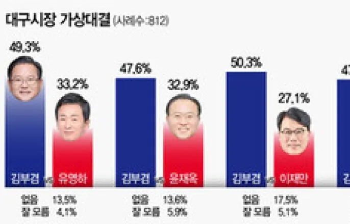 6·3지방선거최대격전지로떠오른대구시장선거역대선거에서민주당이한번도이겨보지못한곳구도와상황은김부겸승리가능한것으로나타나여론조사결과도압도적,관건은숨어있는보수표승리하면‘지역주의타파’역사적과제완수하는것솔직히말해나는그동안대구지역의선거에는별관심이없었다.어느선거에서든늘국민의힘(옛신한국당·새누리당)후보가압도적인표차이로승리해왔기때문이다.'보수의심장'답게대구는지난대선에서도윤석열일당의내란을옹호한국민의힘김문수후보에게전국최고득표율인67.6%를안겼다.아무리보수의보루라고하더라도내란을일으켜온나라를피바다로만들려고했던내란세력을비호하는정당의후보에게몰표를던지는현실은도저히납득하기어려웠다.'대구가뒤집어진다'조짐드러내는각종여론조사결과들그래서연초여론조사에서김부겸전국무총리가대구시장후보군중선두를달리고있다는결과가나왔을때도선뜻믿기어려웠다.3선국회의원,행정안전부장관,국무총리를지낸뒤정계은퇴를선언했던그가험한꼴을당할지도모르는출마를하겠느냐는의문도들었다.선거초반반짝앞서다막판에큰표차이로무너지는민주당후보의징크스가이번에도반복되는것아닐까하는의구심이내내머릿속을맴돌았다.그러나시간이흐를수록김부겸전총리의우세가뚜렷해지면서,그가실제로출마할지도모른다는생각이서서히고개를들기시작했다.실로대구에서불어오는바람의위력은대단했다.30%대에머물던그의지지율은3월들어40%대후반에서50%대초반으로가파르게치솟았다.미풍이순식간에강풍으로변한것이다.반면국민의힘예비후보들의지지율은30%대에서20%대로급락했다.영남일보가3월22~23일실시한여론조사에서김부겸후보는국민의힘예비후보8명전원과의가상대결에서모두앞서는것으로나타났다.국민의힘의당지지율역시붕괴수준이었다.올해1~2월까지만해도50%를유지하던대구의국민의힘지지율이3월들어20%대로곤두박질쳤고,일부조사에서는민주당(27%)에역전당하는충격적인결과(국민의힘25%)까지나왔다.대구시장여야후보가상대결그래픽.영남일보1995년지방선거가부활한이후단한차례도보수정당이패배한적없던대구시장선거에서,이제지각변동의전조가분명하게드러나고있는것이다.이러한흐름속에서김부겸전총리가3월30일공식출마를선언하면서,이번6·3지방선거의최대격전지는단연대구시장선거로떠올랐다.통상지방선거에서가장치열한승부처로꼽히던지역은서울,경기도와부산이었음을고려할때이는매우이례적인판도변화다.김부겸전국무총리가지난달30일오후대구2·28기념공원에서대구시장출마선언을하고있다.오른쪽에서두번째김기현예비후보.2026.4.2.김기현예비후보제공구도유리하고상황도2016년총선승리때와비슷대구시장선거의결과는단순히한도시의수장을뽑는데그치지않는다.부산시장,울산시장,경남도지사등영남전체의선거구도를좌우하는분수령이될수있다는점에서,민주당과국민의힘모두대구에총력을기울일것으로보인다.현재판세는김부겸후보에게구도면에서크게유리한것으로여겨진다.지방선거의향방을좌우하는핵심변수인대통령국정지지율이65%수준을유지하고있으며,정당지지율역시민주당48%대국민의힘18%(한국갤럽3월31~4월2일조사)로민주당이압도적우위를점하고있다.국민의힘의몰락은상당부분자초한측면이크다.극우화와내분,공천파동이겹치면서온건보수성향의지지층이대거이탈했다.특히공천관리위원회가지지율1·2위를달리던유력후보두명을컷오프하는자충수를두면서,후보선출과정자체가혼란에빠졌다.민주당이강력한단일후보를앞세워본격적인선거운동에돌입한반면,국민의힘은아직후보공천조차마무리하지못한상황이다.이상황은김부겸후보가대구에서세번째도전끝에국회의원에당선된2016년총선당시새누리당의공천파동과놀라울정도로유사하다.당시새누리당은친박·비박의극한갈등과이른바'옥새파동'으로자멸한결과,180석을장담할정도로압도적우세가점쳐졌음에도민주당에1석차로패배해원내제2당으로추락했다.보수층의대거이탈과투표기권이판세를뒤집은것이다.이후국민의힘은지금까지제2당의위치에서벗어나지못하고있다.김부겸후보가당시'대구의강남'으로불리던수성구갑에서국민의힘중진김문수후보를꺾고당선된것도,공천파동에실망한보수유권자들의대거투표불참과민주당지지층·중도층의강한결집이맞물린결과였다.국민의힘의반복되는자중지란과파멸적공천파동은이번지방선거곳곳에서2016년의이변이재연될가능성이높음을전망케하는정황이다.홍준표의'김부겸지지'가결정타될까?그런데지금국민의힘의처지는2016년당시보다훨씬더처참하다.당시새누리당의정당지지율은35~40%대였고,박근혜대통령의국정지지율도40%대를유지하고있었다.반면민주당지지율은겨우20%수준이었으며수도권에서출마자를찾기어려울정도로패색이짙었다.그럼에도새누리당은'질수없는선거'에서패배했던것이다.국민의힘입장에서는설상가상으로,홍준표전대표가김부겸후보지지를공개선언했다.대구시장을지낸홍준표전대표는4월2일SNS에"후임대구시장이능력있고중앙정부와타협이되는사람이되었으면좋겠다"