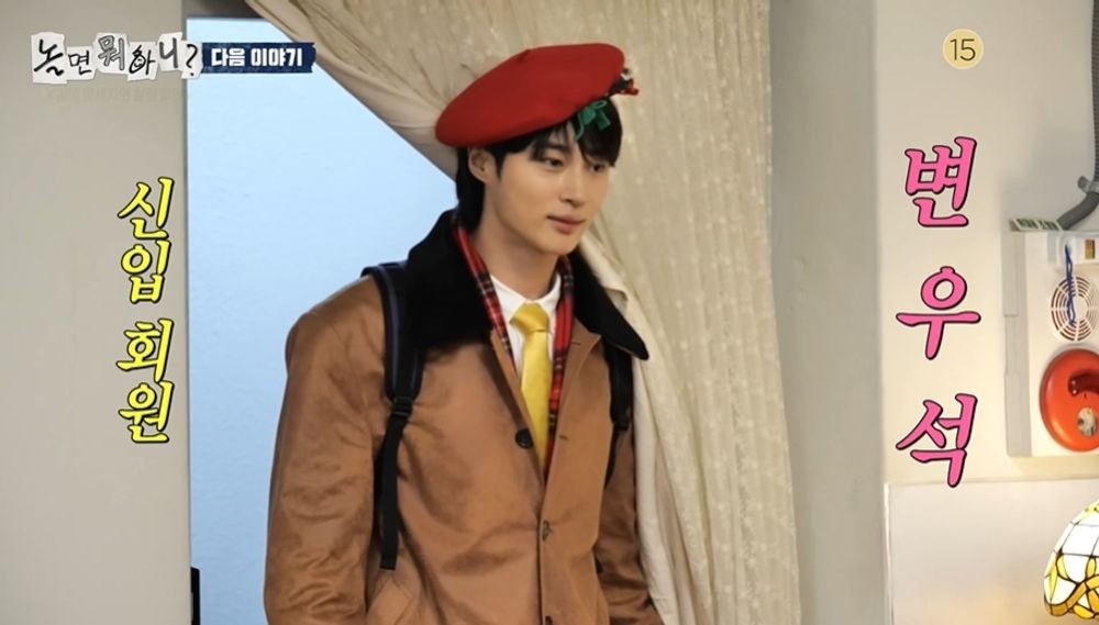 MBC‘놀면뭐하니?’캡처MBC‘놀면뭐하니?’캡처[뉴스엔서유나기자]배우변우석이'놀면뭐하니'에등판했다.4월4일방송된MBC예능'놀면뭐하니?'(이하'놀뭐')323회말미에는'쉼표,클럽'을찾아온변우석이예고됐다.이날완연한봄을맞아'쉼표,클럽'회원들이다시모였다.'강변'(강남역변우석)정준하까지출석했는데,주우재는모임에참여하고싶어하는친구가있다며"그친구도아이디가'변우석'"이라고전하더니"오늘진짜가누군지(가려보자)"고제안했다.불안감에다리를덜덜떠는정준하앞에등장한건진짜변우석이었다.정준하는"야이거큰일났다"며당황했고,신입회원변우석은"저를사칭하고다니신다고"라고사칭범'강변'에게경고를날렸다.허경환은"하나도안닮았다"며"가짜는나가야지"라고주장해'강변'의운명을궁금하게만들었다.뉴스엔서유나stranger77@기사제보및보도자료[email protected]ⓒ뉴스엔.무단전재&재배포금지Copyright©뉴스엔.무단전재및재배포금지.