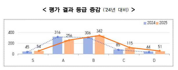 개인정보보호위원회지난해공공기관개인정보보호수준평가에서S·A등급을포함한상위등급기관이전년대비감소한것으로나타났다.개인정보보호위원회는중앙부처·지방자치단체·공기업등1442개공공기관을대상으로실시한'2025년공공기관개인정보보호수준평가'결과를27일발표했다.전체평균점수는76.5점으로집계된가운데A등급이상기관은전년361개에서310개로감소한것으로나타났다.S등급은한국수력원자력,건강보험심사평가원,보건복지부등54개기관(6.6%)으로9개증가했다.다만A등급기관이316개에서256개로감소했다.지난해B등급기관은342개(41.8%)로가장큰비중을차지했다.유형별로는공기업·준정부기관이평균87.5점으로가장높았고,기초자치단체는73.2점으로가장낮았다.자체평가이행률은평균90.0%였다.가명정보안전조치와보안프로그램운영은이행률이높았으나,개인영상정보관리와동의고지항목은미흡했다.심층평가에서는'안전성확보조치노력'이5점만점중2.26점으로가장낮았다.의사결정절차누락과형식적점검이주요원인으로분석됐다.가·감점평가에서는신기술활용기관이높은점수를받았고,유출·처분사례가있는기관은전반적으로점수가낮았다.개인정보보호위원회는평가결과를정부업무평가와연계하고,미흡기관에대해개선권고와컨설팅을실시할계획이다.송경희개인정보보호위원회위원장은“보호수준평가는공공기관의개인정보보호안전관리체계구축과책임성강화를위한제도”라며“우수사례를확산하고집중컨설팅을제공해공공부문기관간보호수준격차격차를해소하겠다”고말했다.박진형기자[email protected]©전자신문.무단전재및재배포금지.