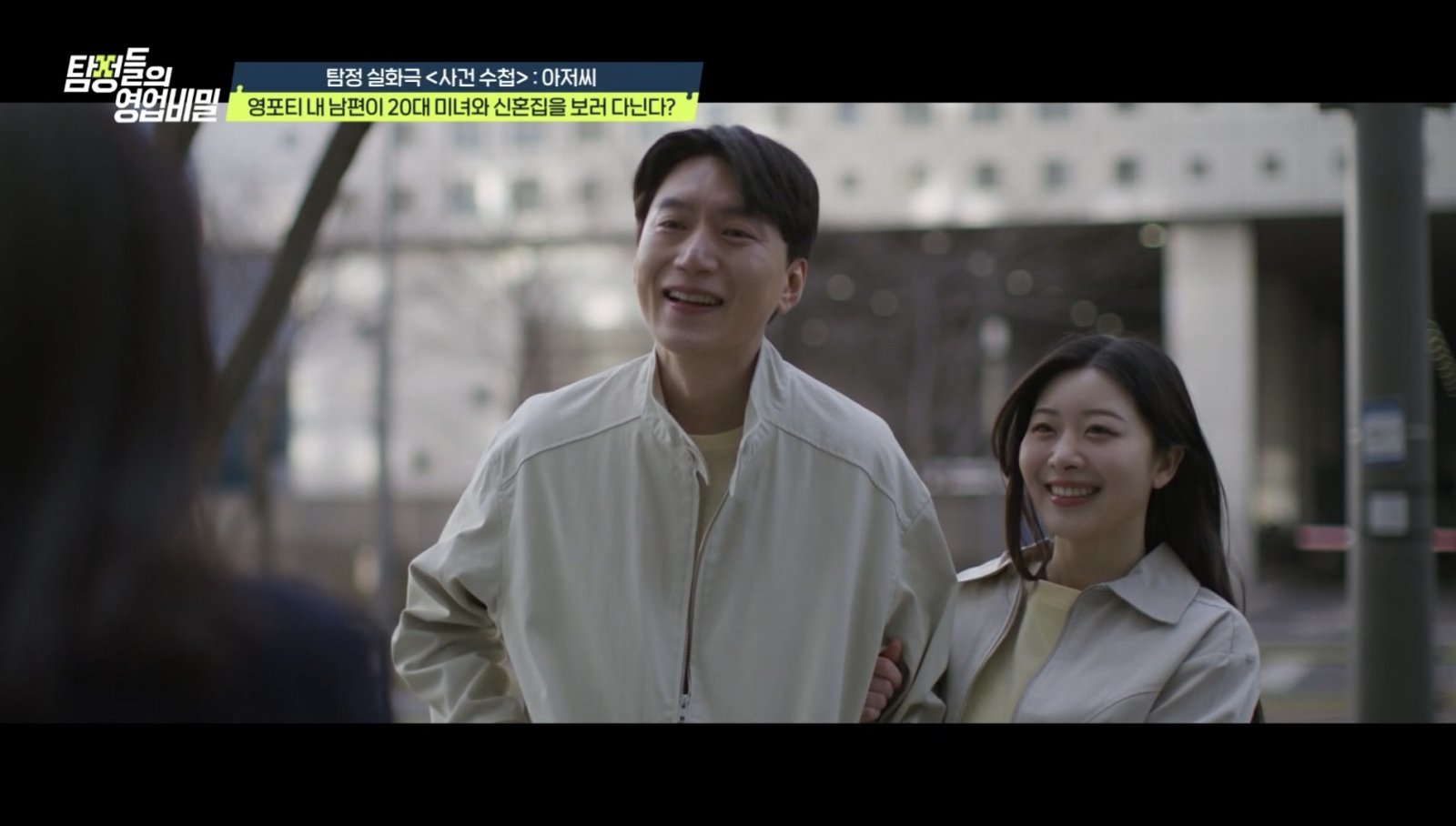 사진제공|채널A[스포츠동아이수진기자]만삭아내를둔남편이20대여성과신혼집을보러다니는장면이포착돼충격을안긴다.27일방송되는채널A‘탐정들의영업비밀’에서는‘영포티감성’에빠진40대남편의수상한이중생활이공개된다.의뢰인은“단정하던남편이갑자기스타일이바뀌었다”고털어놓는다.팀장승진이후주말마다출근한다던남편은후드티와청바지차림으로외출했고,낯선유행어를쓰는등달라진모습을보인다.늦은귀가도잦아지며의심은커진다.결정적인단서는휴대전화에서발견된다.남편은젊은여성과커플룩을입고다정하게사진을찍고있었다.의뢰인은“집마련을위해알뜰하던사람이었다”며변화에충격을받는다.탐정단조사결과남편은주말마다20대로보이는여성과만나모임에참석해왔다.평일에도출근하지않고해당여성과부동산을찾는모습이포착된다.두사람은신혼부부행세를하며집을알아보고있었다.사진제공|채널A이를본데프콘은“집에만삭아내가있는데이해하기어렵다”며분노를드러낸다.스튜디오에서는상황을두고다양한반응이이어진다.한편이날방송에는정선아가출연해“버는만큼써야젊어진다”고말하며현실공감토크를이어간다.데프콘은“중학생때부터아저씨소리를들었다”며웃픈일화를공개해분위기를바꾼다.43세남편의이중생활과숨겨진진실은27일오후10시방송에서공개된다.이수진기자[email protected]©스포츠동아.무단전재및재배포금지.
