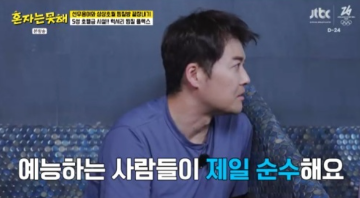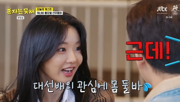 JTBC예능‘혼자는못해’JTBC예능‘혼자는못해’[뉴스엔유경상기자]이세희가대선배선우용여의일침에움찔했다.1월13일첫방송된JTBC예능‘혼자는못해’에서는첫게스트배우선우용여와MC전현무,추성훈,이수지,이세희가함께찜질방체험을했다.선우용여는이세희와초면에“넌요즘잘나가는애라며?잘나간다고막나가면안된다”고조언했다.이세희는바로“네,그렇죠”라며움찔한반응을보였고이수지가폭소했다.선우용여는“더내리고그래야한다”고조언을이어갔다.이어선우용여는“내가연기자생활할때철칙이시간엄수.평생알람을해본적이없다.나때문에드라마NG내지않는것.앞사람이감정을잡았을때내가NG내면감정이깨지니까.그두가지를철저히지켰다”고말했다.선우용여는철칙을지킨이유로“너무힘들게살았기때문에”라고말하다가울컥눈시울을붉혔고,갑작스러운눈물에모두가허둥지둥휴지를찾으러흩어졌다.선우용여는“갑자기눈물이올라온게옛날에고생했던생각이나는거다.비가오나눈이오나.다지나가면남한테피해안주고건강하게재미있게살면된다”고말하며눈물을닦다가시원하게코를풀어서모두를웃겼다.(사진=JTBC예능‘혼자는못해’캡처)뉴스엔유경상yooks@기사제보및보도자료[email protected]ⓒ뉴스엔.무단전재&재배포금지Copyright©뉴스엔.무단전재및재배포금지.