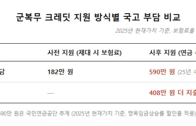 2026년올해부터국민연금보험료와소득대체율이올랐다.국민연금기금의소진시점은2064년으로늦춰졌지만청년세대의불안감은여전하고OECD최악수준인노인빈곤율도해소될기미가없다.국회는연금개혁특위활동시한을2026년말로연장했고이재명대통령도연금개혁을올해의주요국책과제로꼽고있다.이제는개혁의시간,연금개혁의현주소를살펴보고대안을모색해본다.<편집자주>올해부터국민연금보험료율과소득대체율이오른것외에도달라지는중요한제도가있다.군복무크레디트와출산크레디트가확대되는것이다.지난해까지는군복무크레디트가6개월만지급됐지만올해부터1년으로늘어났고출산크레디트의경우둘째아이부터12개월주던것을첫째아이부터12개월을주고,자녀합산50개월상한규정도폐지됐다.이는지난2025년연금개혁당시여야가합의한내용인데이재명정부는군복무크레디트의경우연금법을올해안에개정한뒤내년부터시작해늦어도2028년상반기까지는군복무기간전체에대해연금크레디트를제공하겠다는계획을세우고있다.아직OECD연금선진국들에비해선부족한형편이지만이같은연금크레디트의혜택이대부분청년층에게돌아간다는측면에서긍정적인변화라고할수있다.현재의연금크레디트는미래정부에던지는재정폭탄그럼에도불구하고현재운영되는연금크레디트제도는엄밀히말하면현정부가미래의정부에게재정폭탄을돌리는것과크게다르지않다.현정부는돈한푼내지않으면서가뜩이나초저출산으로인한인구구조변화로재정부담이커질미래의정부에게연금크레디트로인한부담을지게하기때문이다.현재군복무크레디트의경우전액국고로지원된다.그런데군제대시점에보험료를바로지원해주는것이아니라연금을받는시점에12개월의납부기간을합산한다음그로인해늘어나는연금액을국고에서지원해준다.만약2026년에군복무를마치는남성에게바로보험료를지원해준다면올해2026년의가입자평균월소득액A값(319만원)의1/2에대한보험료9.5%를적용해12개월치인182만원을국고에서지원해주면된다.하지만만약40년후에연금을수령할시점에납입기간12개월을추가해늘어나게되는연금수령액을국고에서지원하게된다면25년동안연금수급시모두590만원을지급하게된다(국민연금공단추계:현재가기준).사전에보험료를지급할때보다국고에서나가는돈이3배이상늘어나게되는것이다.이렇게금액이늘어나게되는것은40년후의가입자평균월소득액A값이지금보다크게늘어나는데다국민연금의수익비가워낙좋기때문이다.국고에서사후에지원하게되면사전에보험료를지급할때보다3배이상을더부담해야한다.국고운영차원에서보면미래시점에나가는돈의규모가훨씬클뿐만아니라국민연금기금운용의차원에서도비효율적이다.국고에서보험료를미리지원하면기금에적립해운용수익을늘릴수있기때문이다.현정부가보험료를지원하면종자값만지불하고국민연금이열매를수확하게하는셈이지만사후지원하게될경우에는미래의정부가훨씬많은돈을들여열매값을지불해야하는것과같다.2008년에시작된군복무크레디트는2047년이돼야혜택이시작될것으로보인다.현재의제도대로라면그때까지정부는돈한푼쓰지않는대신그짐은고스란히40년후에세금을낼미래세대에게고스란히돌아가게된다.2050년이면노인인구가40%를넘어서고2070년이면노인인구가46%까지치솟을것으로예상되는상황에서연금개혁에역행하는처사가아닐수없다.출산크레디트도마찬가지다.출산크레디트는국고에서30%국민연금기금에서70%를지원하는데2026년에12개월치보험료를지원할경우엔1인당106만원을국고에서지원하면되지만40년후연금지급을위해선1인당236만원을국고에서지원해야한다.국고지원몫인30%를보험료로즉시지원할경우2026년기준2천4백억원,전액국고지원시8천억원정도의예산이필요하다.현재사전보험료지원으로의전환은국회와보건복지부차원에서많은공감대가이뤄지고있지만예산당국의반발때문에전혀논의가진전되지못하고있다.김남희국회연금특위위원(더불어민주당)은14일,군제대및출산시점에연금크레디트가적립되도록하는내용의국민연금법개정안을발의했다.김의원은“군복무와출산크레디트가연금을수령하는시기부터적용된다면세대간연대와국가지급보장이라는공적연금제도취지를살릴수없게된다”며“발생시점에크레디트를제공함으로써청년들의신뢰가높아질것으로기대된다”고개정안취지를설명했다.국가차원의저출산대책…국가책임을국민연금기금에전가국고로지원해야할몫을국민연금기금으로지원하는것도문제다.출산크레디트는출산을장려하고지원하기위한국가차원의정책적목표때문에부여하는것이다.하지만출산크레디트의30%만국고에서지원하고70%는국민연금기금에서지원하고있다.국가의존립자체를위협할수도있는저출산문제를극복하기위해도입한것이출산크레디트제도인데이를전액국가의예산으로하지않고국민연금가입자보험료로조성된기금에서70%나충당하는것은국가의역할을방기하는것이나다름없다.군복무크레디트를전액국고에서지원하는것과비교할때형평성에도어긋난다.독일과영국등대부분의연금선진국들은출산크레디트를전액국가에서부담하거나거의대부분