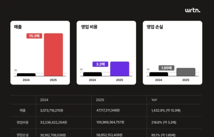 [디지털데일리오병훈기자]뤼튼테크놀로지스(뤼튼)가창립5년만에첫공시로구체적인매출및영업이익등실적을공개했다.매출은전년동기보다15배급증했다.극단적인매출성장배경에는AI캐릭터챗서비스안착과이용자확보전략이주효했던것으로풀이된다.물론매출확대과정에서공격적인투자가진행되면서영업비용도크게늘었다.특히지급수수료가큰폭으로늘어났으며,이용자확보에필요한광고선전비와인력을확충하는과정에서필요한인건비도증가한것이원인이다.뤼튼은현재AX역량강화및글로벌진출에강한드라이브를걸고있다.이를기반으로매출성장을유지하고영업이익구조를개선하겠다는것이뤼튼의구상이다.17일금융감독원전자공시시스템(DART)에따르면뤼튼은지난해연결매출약471억원을기록했다.전년동기보다1432.9%증가한수치다.영업손실은588억원으로전년동기대비95.1%증가했다.◆크랙·쨈등B2C콘텐츠서비스가매출주도뤼튼은지난해연간실적매출확대배경으로견조한B2C서비스성과를꼽았다.특히지난해4월출시된AI스토리텔링및롤플레잉플랫폼‘크랙’의성장이주효했다는설명이다.크랙은AI가사용자가입력한프롬프트를기반으로이야기를창작해주는캐릭터챗콘텐츠플랫폼이다.크랙은뤼튼앱내‘캐릭터챗’으로서비스를시작했으며서비스확장가능성을보고별도앱으로출시됐다.사용자가직접이야기의주인공이나관찰자가돼AI캐릭터들과실시간으로채팅하며즉흥적으로서사를전개하고플레이할수있다는점에서많은이용자들의관심을끌었다.최근이동재최고제품책임자(CPO)가외신디인포메이션인터뷰를통해밝힌크랙이용자는약50만명이다.크랙의경우국내AI캐릭터채팅콘텐츠초기시장을선점한플랫폼으로평가받으면서뤼튼의안정적인캐시카우가될수있다는평가다.엔터·콘텐츠사업특성상이용자충성도가높은편이고몰입도높은콘텐츠지속공급으로이용자당평균매출도지속적으로확대할수있을것으로전망된다.AI영상제작플랫폼‘쨈’도AI밈(meme)·AI필터로영상·사진을쉽고빠르게제작할수있는콘텐츠제작앱이다.사진한장으로숏폼플랫폼에서유행하는밈영상이나이미지를간편하게만들수있어이용자관심을모으고있다.뤼튼관계자는“실질적인효용을제공하기위해사업역량을집중해왔다”며“이번성과는크랙과쨈등소비자대상거래(B2C)AI서비스분야가주도했고일본현지사업과B2B엔터프라이즈AX분야의실적도반영됐다”고설명했다.◆지급수수료급증…“API비용하락추세,자체모델개발준비”서비스확장과정에서API비용및광고집행등공격적인투자가이뤄지면서영업비용도크게증가했다.지난해연간연결영업비용은약1060억원으로전년동기보다약2배늘었다.주요비용항목중눈에띄는것은지급수수료부분이다.지난해연간지급수수료는전체영업비용의절반이넘는약611억원으로,전년보다297%증가했다.뤼튼은서비스과정에다양한글로벌대형언어모델(LLM)을활용중이다.서비스확장및이용자확대로API비용도자연스럽게늘어나며지급수수료증가로이어진것으로풀이된다.AI서비스기업입장에서API비용부담완화는수익성개선을위한핵심과제로꼽힌다.외부모델의존도가높을수록API비용이증가하게된다.서비스가확장되고이용자가늘어날수록비용도함께증가하는문제가지속될수있다.다만글로벌AI모델시장상황은희망적이라는것이뤼튼측해석이다.빅테크기업들의AI모델출시경쟁이격화되면서저렴한API비용을강점으로내세우고있다.이에따라글로벌모델의API비용도하락추세라는것이뤼튼측설명이다.상업용으로활용가능한오픈소스모델종류가다양해지고있는점도뤼튼에게희망적이다.실제로최근구글은자유로운상업활용이가능한‘아파치2.0’라이선스로‘젬마4’를공개했다.뤼튼관계자는“주요LLM모델들의API가격이지속적으로인하돼왔고,오픈소스모델의성능향상으로대체가능성도높아지고있다”며“뤼튼은다중LLM전략을통해비용최적화를지속하고있으며자체모델개발역량을갖춰가고있어향후API비용은구조적으로하락할것으로예상하고있다”고말했다.이외의인건비,광고선전비등주요비용도증가했다.지난해급여는95억원으로전년보다29%증가했다.지난2024년12월기준직원수는92명이고,지난해12월기준직원수는140명이다.광고선전비는약294억원으로전년보다약384%증가했다.◆AX역량확보본격화,日시장활동도속도매출15배확대로몸집키우기에성공한뤼튼은향후AX역량강화를통해B2C서비스뿐아니라기업대상거래(B2B)사업확장에도집중할계획이다.계절및트렌드영향을받는B2C시장매출불확실성을극복하고공공및엔터프라이즈AX사업을확보해B2B사업매출확대에도집중하겠다는포석이다.이에뤼튼은지난해9월기업의AI도입컨설팅·솔루션서비스를제공하는뤼튼내사내독립기업(CIC)으로‘뤼튼AX’를설립했다.뤼튼은그동안쌓은B2CAI서비스노하우를바탕으로기업용AI에이전트경쟁력을높이겠다는구상이다.뤼튼관계자는“현재대기업,중견·중소기업들의AI전환프로젝트를수주해진행하고있고앞으로매출의상당부분을차지할것으로기대하고있다”고말했다.해외진출에도본격드라이브를걸고있다.지난해부터일본에서AI캐릭터채팅·시뮬레이션플랫폼‘캬라푸’를서비스중이다.최근미