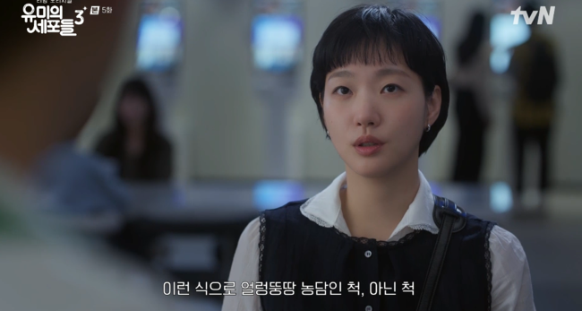 '유미의세포들3'방송방송시청후작성된리뷰기사입니다.[OSEN=최지연기자]'유미의세포들3'유미(김고은분)가자신을향해호감을드러내는주호(최다니엘분)를거절했다.27일방송된티빙오리지널‘유미의세포들시즌3’(연출이상엽,극본송재정·김경란,제공티빙)5화에는유미를따라영화관까지따라온주호의모습과둘사이에서오작교역할을했다고오해받은순록(김재원분)의모습이그려졌다.이날순록의문자를받고영화관에도착한유미는순록옆의주호를발견하고놀랐다.유미는순록과단둘이영화를본다고예상했던상황.유미의세포들은"김작가가시켰나봐.유미가안나올거같으니까"라고오해했고,영화를보는내내불쾌함을떨치지못했다.'유미의세포들3'방송결국분노에휩싸인유미의감성세포는영화가끝나고,3차를제안하는주호에게"저좋아하세요?저랑만나보고싶으세요?"라고돌직구를날렸다.이에김주호는유미에게호감이있다고인정,유미는"그런데전싫어요.저는얼렁뚱땅다가오는남자싫어해요.전작가님을따로만나고싶은생각없어요"라고거절했다.그리고주호와자리를만들어주었다고오해한순록에게"이런것까지피디님업무인가요?이건오지랖이죠"라고일침하고자리를떠나긴장감을고조시켰다.한편‘유미의세포들’은동명의인기웹툰을원작삼아드라마로만들어진작품으로,시즌3에서는스타작가가된유미의무자극일상속날벼락처럼찾아온뜻밖의인물로인해다시한번웃고울고사랑에빠지는세포자극공감로맨스를다룬다./[email protected][사진]'유미의세포들3'방송Copyright©OSEN.무단전재및재배포금지.
