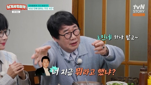 tvNSTORY‘남겨서뭐하게’캡처tvNSTORY‘남겨서뭐하게’캡처[뉴스엔유경상기자]최양락이임하룡에게우유싸대기를맞은일을꺼냈다.4월27일방송된tvNSTORY‘남겨서뭐하게’40회에서는개그맨최양락팽현숙부부가출연했다.이영자는최양락팽현숙부부에게“개그맨부부이혼1호가안되려고노력하는것같더라”고말했고,팽현숙은“우리가결혼1호라부담스럽다.25호까지나왔다.먼저이혼하면자존심상하고1번이총대를메는거”라고말했다.최양락팽현숙부부는일단1호가나오면개그맨부부이혼봇물이터질거라고예측했다.이어이영자가“쪽파로때린거연출아니죠?”라고묻자팽현숙은“시청자댓글이어떻게남편에게그럴수있냐고하는데부모님이온양에서농사를지으셨다.그거하나가귀한거다.그걸다잘라버리니까화가났다”고말했다.이영자가“쪽파로맞고왜웃었냐”고묻자최양락은“내가족발,구두뒷발,우유싸대기도맞았는데.쪽파로도맞으니쪽팔리더라”고답했다.팽현숙은“임하룡이평생누구를한번도때린적이없는데최양락을우유로한번때려서평생가슴이아프다고하더라”고후일담도전했다.최양락은“임하룡별명이노인네였다.선배들에게우유를주면서노인네하나받고.너지금뭐라고했냐.우유싸대기를맞았다.다노인네라고불렀는데왜나만.내가만만하고촌놈이라그런거아니냐”고억울함을호소했다.임하룡이나이는10살많지만최양락과같은시기에데뷔했다고.최양락은“개그계대가라면그정도는이해해야하는거다.전유성형은이해했다.‘형은싸가지가없어요’그랬더니어이가없어서떨었다.정문에서날패려고기다리고있었다.난후문으로사라졌다.다음날만났다.어제너어디로갔니?잘했다,정문으로왔으면너맞았다고그러더라”고전유성과있었던일도말했다.뉴스엔유경상yooks@기사제보및보도자료[email protected]ⓒ뉴스엔.무단전재&재배포금지Copyright©뉴스엔.무단전재및재배포금지.