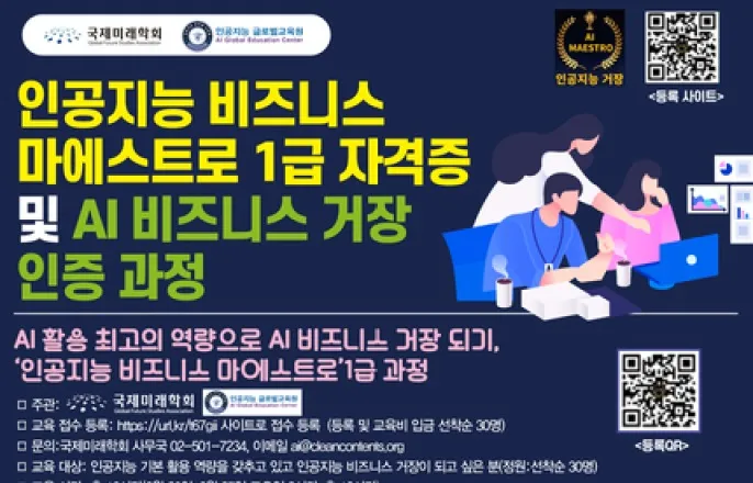 6월20일·27일집중교육실시인공지능(AI)이산업과비즈니스판도를근본적으로바꾸고있는가운데,AI를활용해실질적인비즈니스성과를창출할수있는최고수준의실전형교육과정이개설된다.국제미래학회와인공지능글로벌교육원은'인공지능비즈니스마에스트로1급자격증및AI비즈니스거장인증과정'을공식개설하고,AI시대를선도할차세대AI비즈니스리더양성에본격나선다고밝혔다.이번과정의가장큰특징은실제비즈니스현장에서즉시활용할수있는'AI실전역량강화'에초점을맞췄다는점이다.단순히AI를배우는수준을넘어,AI를활용해업무혁신과수익창출까지연결할수있도록설계된국내최초의통합형AI비즈니스전문과정이다.특히△AI에이전트를활용한업무혁신및마케팅자동화△바이브코딩을활용한비즈니스웹제작△생성형AI기반홍보콘텐츠제작△AI활용비즈니스데이터분석및프레젠테이션전략등비즈니스전영역을아우르는통합커리큘럼을통해참가자들이'AI활용자'를넘어'AI기반비즈니스성과창출형리더'로도약할수있도록구성됐다.1기교육은총16시간집중과정으로운영된다.오는6월20일과6월27일,총이틀간하루8시간씩진행되며,교육대상은AI기본활용역량을갖추고AI기반비즈니스리더로성장하고자하는기업인,직장인,창업가,교육자등이다.교육과정은AI인류혁명과비즈니스패러다임이해를시작으로△AI에이전트를활용한비즈니스업무자동화△AI기반회의혁신및의사결정△AI활용비즈니스조사및통계분석혁신△AI기반문서작성및커뮤니케이션혁신등업무효율을극대화하는핵심역량을집중적으로다룬다.또△AI바이브코딩을통한비즈니스웹사이트제작△AI활용광고및글로벌홍보영상제작△AI기반로고·광고물·포스터제작△AI활용굿즈비즈니스및쇼핑몰구축△AI로고송및홍보콘텐츠제작△AI기반PPT제작및효과적인프레젠테이션전략등실제수익창출과직결되는고부가가치비즈니스실전기술까지폭넓게포함돼있다.본과정은AI를활용해새로운비즈니스모델을창출하고시장을선도하는'AI비즈니스거장'을양성하는데목적이있다.교육수료자에게는'인공지능비즈니스마에스트로(AI거장)1급자격증'과함께'AI비즈니스거장인증과정'수료증이동시에제공돼,AI시대전문성과권위를공식적으로인정받을수있다.강사진역시국내최고수준으로구성됐다.국내대표AI실전교육전문가인안종배국제미래학회장을중심으로,AI교육과AI비즈니스현장을선도하는총6명의전문가가교수진으로참여해최고수준의실전형AI비즈니스교육을제공한다.주최측은“AI인류혁명시대에는단순히AI를이해하는것을넘어,AI를활용해새로운비즈니스가치를창출하는능력이기업과개인의생존을좌우하게된다”며“이번과정은대한민국최초의AI비즈니스리더양성프로그램으로,향후기업경쟁력과개인경력을획기적으로변화시킬핵심교육이될것”이라고밝혔다.이번'인공지능비즈니스마에스트로1급과정'은선착순30명한정으로모집된다.자세한사항은국제미래학회사무국으로하면된다.김현민기자[email protected]©전자신문.무단전재및재배포금지.