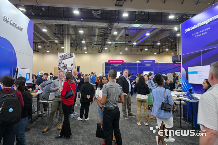 27일(현지시간)미국그레이프바인에서열린'SAS이노베이트2026'AI이노베이션허브현장.ⓒ박종진기자데이터분석중심글로벌인공지능(AI)기업SAS의연례행사'SAS이노베이트2026'이개막했다.SAS는27일(현지시간)미국그레이프바인게이로드텍산리조트컨벤션센터에서'SAS이노베이트2026'환영리셉션을열고행사시작을알렸다.올해는데이터분석과AI를결합해기업의사결정최적화를지원하는'SAS바이야'등자사AI기술발전상과함께신규솔루션출시계획을발표할예정이다.SAS는통계분석에서출발해머신러닝·AI까지확장한기업용데이터분석플랫폼기업이다.국내에서는금융·공공분야에강점이있다.SAS이노베이트는매년AI·데이터핵심전략을공개하는최대연례행사다.이번행사에미국을비롯해아시아·유럽등세계에서2300명이상이참석할것으로전망된다.'SAS이노베이트2026'AI이노베이션허브관내짐굿나잇SAS최고경영자(CEO)등신대와SAS의다음50년비전.ⓒ박종진기자올해는창립50주년을맞이해△에이전틱AI:지능을행동으로옮기기△디지털트윈·합성데이터:가능성파악하기△퀀텀컴퓨팅:목적을갖고준비하기△신뢰가능한AI:자신감있는결정을내릴수있게지원하기등다음50년을향한비전도공유했다.그동안기업이사람에게투자하고고객을최우선으로목적이분명한혁신을추진해온SAS만의기업문화를AI시대를맞아발전시킨것으로풀이된다.SAS는이날리셉션에앞서사전행사로'SAS해커톤부트캠프'도개최했다.세계각국의개발자약150이참여했다.SAS바이야기반최첨단데이터와AI기술을활용,데이터·AI라이프사이클을각자방식으로구현하는협업과혁신을촉진하는실습의시간이었다.'SAS이노베이트2026'본행사에앞서열린SAS해커톤부트캠프현장.ⓒ박종진기자SAS이노베이트2026은오는30일까지열린다.참석자들은AI로사업을확대하고매출을늘리는실질적인전략과AX(AI전환)시대대응전략이발표될것으로기대하고있다.AI를실제로운영하고확장하는등실제비즈니스에적용하는방식에대한수요다.국내에서는SAS의한국유일파트너사인코오롱베니트와한국신용정보원등공공기관,현대캐피탈미국법인등금융사,학계관계자등이참석한다.그레이프바인=박종진기자[email protected]©전자신문.무단전재및재배포금지.
