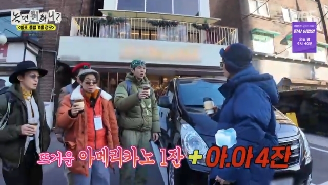 MBC‘놀면뭐하니?’캡처MBC‘놀면뭐하니?’캡처[뉴스엔서유나기자]방송인유재석의이기주의에회원들의원성이폭발했다.1월17일방송된MBC예능'놀면뭐하니?'(이하'놀뭐')313회에서는신입회원정준하와함께하는'쉼표,클럽'두번째정모가진행됐다.이날카페에서나가며회원들은음료수한잔씩을포장했는데유재석혼자따뜻한음료를시킨걸알아챈하하는"왜혼자핫이냐.우리는손시려운데"라며발끈했다.정준하주우재도"여기핫안먹고싶은사람이어디있냐","영하6도에누가아이스를마시냐"고따졌다.유재석은"얼죽아(얼어죽어도아이스아메리카노)아니냐.저는얼죽아가아니다"라고뻔뻔하게주장했다.이에하하는"저도아니다"라며억울해했다.허경환은"바로나올줄알았으면따뜻한거시켰지"라며후회했다.뉴스엔서유나stranger77@기사제보및보도자료[email protected]ⓒ뉴스엔.무단전재&재배포금지Copyright©뉴스엔.무단전재및재배포금지.