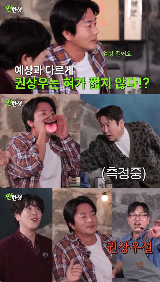 ▲출처|유튜브'짠한형신동엽'캡처[스포티비뉴스=최신애기자]권상우가혀길이를인증했다.19일유튜브채널'짠한형'에는권상우,문채원,피오가출연한영상이게재됐다.이날권상우는'혀가짧다'는오해를적극해명하는모습으로웃음을안겼다.그는"제가혀가진짜길다.이거보여주면300만뷰돌파한다.아~나이러면안되는데"라며혀를내밀태세를보였다.이에신동엽은계속혀를내밀라고하더니,진짜그가혀를내밀어보이자"아이고..진짜기네"라고찐반응을보여웃음을더했다.그러면서그는"하필우리가먹는게우설인데..이만해"라고전했고,정호철과피오는"권상우설"이라며너스레를떨었다.권상우역시"(혀가)거의돔구장이다.짧은것보다낫잖아.보여줘요?"라고다시적극성을띠었고,피오는"아.괜찮아요형~"이라고만류했다.그럼에도권상우는"사람들이편견이있는것같아서~"라고덧붙여모두를빵터지게만들었다.<저작권자ⓒSPOTVNEWS.무단전재및재배포금지>Copyright©스포티비뉴스.무단전재및재배포금지.