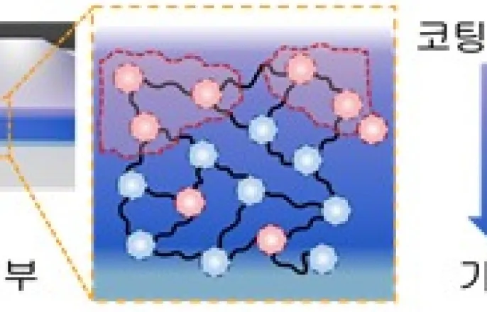 생기원-한양대연구팀,'이미드'기반첨가제로코팅소재개선첨가제와고분자사슬상호작용이용…"폴더블디스플레이개선"이미드기반첨가제에의해형성된표면내부역할분리코팅구조모식도.(한국생산기술연구원제공)(서울=뉴스1)윤주영기자=한국생산기술연구원(이하생기원)은한양대공동연구팀과반복적인긁힘·접힘에도표면성능을스스로회복할수있는고경도코팅소재기술을개발했다고22일밝혔다.생기원녹색순환연구부문홍성우수석연구원과고민재한양대화학공학과교수연구팀이연구에참여했다.이들이개발한코팅소재는손톱이나동전으로긁어도흠집이나지않고,상온에서10초이내에긁힘이복구된다.또20만회이상접어도손상이없다.연구팀은폴더블디스플레이의'트레이드오프'손상을해결하고자코팅소재를개발했다.폴더블디스플레이표면은잦은접촉·접힘으로인해쉽게눌리거나긁힌다.손상이누적되면화면의선명도가낮아지고,터치감도가둔해져제품품질에악영향을준다.연구진은구체적으로코팅소재에서표면과내부의역할을분리하는새로운설계방식을도입했다.이들은특정한성질을가진'이미드(Imide)'기반첨가제를개발한뒤,이를기존코팅재료에소량혼합해새로운코팅소재를만들었다.구체적으로이미드는표면으로이동하려는성질과내부고분자사슬간상호작용을동시에갖도록설계됐다.이에기반한첨가제는코팅막이굳어지는과정에서물위의기름처럼표면쪽으로이동,나노미터크기로뭉쳐표면과내부성질이다른구조를형성한다.이같은특성을통해표면보호기능과자가치유기능이동시에구현된다는설명이다.코팅표면에뭉쳐진첨가제는화학물질과잘섞이지않는구조를띠며,단단한보호층을이루기때문에긁힘등물리적자극이나화학물질노출로인한손상을막아준다.또코팅내부는첨가제와고분자사슬이강하게상호작용해,긁힘으로벌어진구조를안쪽부터메운다.상온에서도표면의흠집을빠르게회복시킨다.코팅소재를연필로긁어보는시험을한결과,경도는4H수준으로나타났다.연필경도시험에서가장단단한단계가9H다.손톱이나동전등물질에쉽게긁히지않고,코팅표면에형성된긁힘도상온에서약10초이내에사라지는것을확인했다.이밖에도접힘반경1.5㎜조건에서20만회이상굽혀보는시험,톨루엔(Toluene)에18시간이상담가두는내화학성시험에서도균열·박리·투명도저하없이성능이유지됐다.첨가제는소량만추가하면되기때문에별도의설비투자나공정변경없이생산에적용할수있다는장점이있다.또유리,플라스틱등다양한소재기판에코팅할수있어여러형태의표면보호공정에폭넓게활용할수있다.홍성우수석연구원은"폴더블디스플레이는물론자동차,고부가전자제품등다양한분야에활용할수있을것"이라고말했다.한편연구는화학공학국제학술지'케미컬엔지니어링저널'온라인판에지난달게재됐다[email protected]©뉴스1.Allrightsreserved.무단전재및재배포,AI학습이용금지.