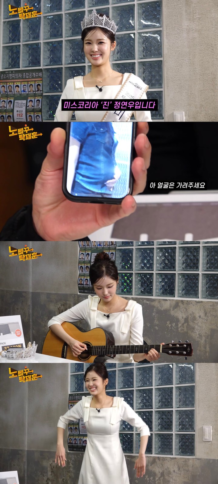 (MHN김설기자)미스코리아진출신정연우가솔직하고엉뚱한매력으로예능감을뽐냈다.21일유튜브채널'노빠꾸탁재훈'에는'정연우,미스코리아미스경북은'진'이지만미스트롯은떨어'진'수상할정도로미스에집착하는그녀'라는제목의영상이공개됐다.이날영상에는2025년미스코리아진정연우가게스트로출연했다.이날정연우는등장부터'청순한장원영닮은꼴'이라는수식어로주목받았다.그러나해당별명에대해정연우는"그건너무하다.욕먹는다.닮지않았다"며단호하게선을그어웃음을자아냈다.미스코리아식인사를요청받자잠시어색해하며일어서미스코리아식인사를건넸고,"미스코리아지망생같다"는말에"무대선이후로처음이라그렇다"며귀엽게해명했다.대학생시절인기에대한질문에는"고백을많이받았다"고솔직히밝혔지만,"누가고백했는지는하나도기억이안난다.생각을빨리잊어버린다"고말해신규진은"상처다,상처"라며웃음을보탰다.이상형에대해서는"예쁘게생긴사람보다곱게생긴사람이좋다.머리긴사람이좋다"고말했고,신규진이장문복,서남용,임우일등을언급하자순간말을잇지못하는모습으로폭소를유발했다.정연우는엄한부모님밑에서자랐다는일화도공개했다."대학생때까지휴대전화에위치추적기가있었다"며"그래서휴대폰을집에두고나가서놀았다"고밝혔다.특기질문에는'뱃살만들기'라고답해의아함을자아냈고,현재는다이어트중이라며한달전사진을공개해웃음을더했다.또한최근'미스트롯4'에도전했다는사실을밝히며기타를들고즉석에서노래를선보였다.처음에는MC들의"지금뭐하는거냐"는반응을이끌어냈지만,곧바로이어진안정적인가창력에"너무잘한다"는박수를받았다.여기에춤까지곁들이자MC들은"조용한또라이같다"며예능감을인정했다.한편'노빠꾸탁재훈'은매주수요일오후6시새로운에피소드가공개된다.사진=유튜브'노빠꾸탁재훈'Copyright©MHN.무단전재및재배포금지.