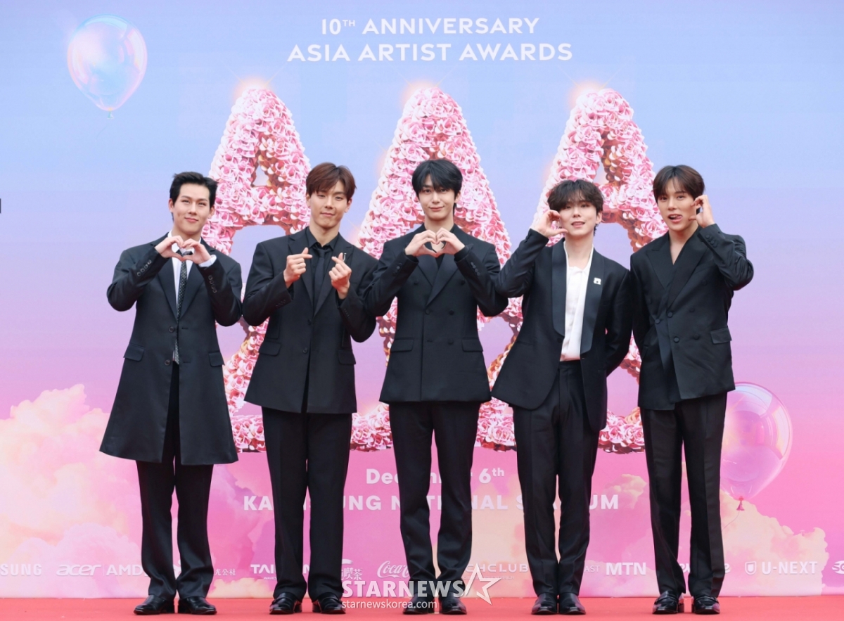 [스타뉴스|안윤지기자]그룹몬스타엑스가6일대만가오슝내셔널스타디움에서진행된스타뉴스주최'10주년아시아아티스트어워즈2025(10thAnniversaryAsiaArtistAwards2025,'10주년AAA2025')레드카펫행사에참석해포즈를취하고있다.12월6일~7일양일에걸쳐가오슝내셔널스타디움에서펼쳐지는'10주년아시아아티스트어워즈2025(10thAnniversaryAsiaArtistAwards2025,'10주년AAA2025')'와페스타'ACON2025'는MTN(머니투데이방송)과위버스(Weverse)를통해각각TV와온라인스트리밍으로생중계된다./2025.12.06/사진=이동훈photoguy@그룹에이티즈가6일대만가오슝내셔널스타디움에서진행된스타뉴스주최'10주년아시아아티스트어워즈2025(10thAnniversaryAsiaArtistAwards2025,'10주년AAA2025')레드카펫행사에참석해포즈를취하고있다.12월6일~7일양일에걸쳐가오슝내셔널스타디움에서펼쳐지는'10주년아시아아티스트어워즈2025(10thAnniversaryAsiaArtistAwards2025,'10주년AAA2025')'와페스타'ACON2025'는MTN(머니투데이방송)과위버스(Weverse)를통해각각TV와온라인스트리밍으로생중계된다./2025.12.06/사진=이동훈photoguy@그룹몬스타엑스와에이티즈가'AAA2025'베스트아티스트상을수상했다.6일오후가오슝내셔널스타디움에서'10주년아시아아티스트어워즈2025'(10thAnniversaryAsiaArtistAwards2025,이하'AAA2025')가개최됐다.시상식사회는이준호와장원영이맡았다.이날몬스타엑스와에이티즈가베스트아티스트상을받았다.먼저몬스타엑스는"AAA도10주년이고몬스타엑스도10주년이다.이상이더의미있게느껴지는거같다"라며"많은아티스트분이계시는데10년간활동하며상도감사하지만,이자리에불러주는것만으로도영광이다.무대도잘보고가도록하겠다"라고말했다.또한"사랑한다몬베베"를외치며수상의기쁨을나눴다.에이티즈는"AAA에첫참석인데상을주셔서정말감사하다.우리가처음온만큼좋은무대준비했으니멋있게봐주시길바란다"라며"우릴낳아주신부모님도감사하다.에이티니사랑합니다"라고전했다.한편스타뉴스가주최하고AAA조직위원회(조직위원장박준철)와모티브(MOTIVE,대표조현우),디쇼(D-SOW)가주관하는'AAA2025'는배우부문에강유석,김유정,문소리,박보검,박윤호,사토타케루,아이유,엄지원,이이경,이준영,이준혁,이준호,임윤아,차주영,최대훈,추영우,혜리가참석했다.가수부문에는넥스지(NEXZ),라이즈(RIIZE),르세라핌(LESSERAFIM),몬스타엑스(MONSTAX),미야오(MEOVV),스트레이키즈(StrayKids),싸이커스(xikers),아이브(IVE),아홉(AHOF),애쉬아일랜드(AshIsland),에이티즈(ATEEZ),올데이프로젝트(ALLDAYPROJECT),우즈(WOODZ),임준걸(JJLIN),최예나(YENA),코르티스(CORTIS),크래비티(CRAVITY),키스오브라이프(KISSOFLIFE),키키(KiiiKiii),킥플립(KickFlip),CHANMINA(챤미나),i-dle(아이들)슈화(SHUHUA),QWER(큐더블유이알),TWS(투어스)등이참석해가오슝내셔널스타디움을환호성으로물들였다.오는7일오후6시(한국시간)개최되는페스타'ACON2025'에는넥스지,아홉,애쉬아일랜드,에이티즈,우즈,최예나,키스오브라이프,키키,킥플립,크래비티,싸이커스,SB19,QWER등13팀이무대에올라시상식의뜨거운열기를이어간다.'ACON2025'는위버스를통해실시간스트리밍된다.안윤지기자[email protected]©스타뉴스&starnewskorea.com,무단전재및재배포금지