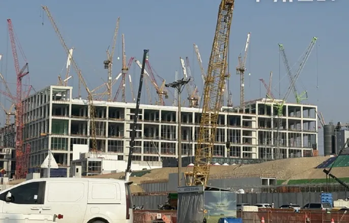 1기팹2027년5월가동목표…국내최대반도체토목공사"평택·청주보다크게느껴져"…버스50대·밤샘공사김동연"전력3GW공급방안확정...공기5년단축"식당·편의점급증…"월세70만→100만원이하실종"[아이뉴스24권서아·황세웅기자]지난23일오전8시30분경기도용인시처인구원삼면SK하이닉스용인반도체클러스터공사현장.영하12도칼바람이몰아쳤지만현장진입로부터덤프트럭이쉼없이오르내렸다.크레인이빼곡했고,층층이올라간철근구조물이사이로작업자들은쉴새없이오갔다.이곳에서5개월째전기공정을맡고있다는K씨는"현장에처음왔을때는사람이별로없어보였는데,지금은인력이적어도1만~1만3000명정도는되는것같다"고말했다.그는"날씨가풀리면더늘어날것같다"고덧붙였다.현재1만여명인인력5만여명까지늘어날수있을것으로내다봤다.이날특히김동연경기도지사가현장을방문해기업인들과간담회를갖고,업계가곤란해하던클러스터전력문제에대한해법을제시하기도했다.경기용인시처인구에건설중인SK하이닉스용인반도체클러스터1기팹(공장).[사진=권서아기자]SK하이닉스는이곳에반도체클러스터를조성하고있다.2025년2월착공이후1년여만에골조윤곽이드러났으며,1기팹(공장)가동목표일은2027년5월이다.추후2~4기팹과소부장(소재·부품·장비)단지조성이동시에진행될경우,현장투입인력이최대5만명안팎까지늘어날가능성도거론되고있다.점심시간이가까워지자공사현장에서작업자들이하나둘움직이기시작했다.안전모를쓴채줄지어현장식당으로향했다.오전11시30분을조금넘기자식당은빠르게찼고,30분남짓지나자다시헬멧을눌러쓰고우르르공사장으로흩어졌다.한작업자는"추위가심해져이번주부터점심시간을기존두시간에서한시간으로줄였다"며"출근시간도오전7시30분에서8시30분으로한시간늦췄다"고말했다.23일경기용인시처인구원삼면SK하이닉스용인반도체클러스터인근의한현장식당에서작업자들이점심식사를하고있다.[사진=권서아기자]1기팹2027년5월가동목표…국내최대반도체토목공사용인반도체클러스터의전체면적은416만5000㎡(126만평)로,서울여의도면적1.4배에달한다.단일사업기준으로국내최대반도체토목공사로꼽힌다.단지는기능별로5개구역으로나뉜다.SK하이닉스팹이들어서는A구역(약60만평)을중심으로,북측에는소부장기업이입주하는협력화단지(B)가조성된다.동측에는약1900세대규모의주거시설(C)과공공시설(D)이들어선다.남측에는집단에너지·자원순환센터(E)등이배치된다.산을깎아평균고도를맞추는대규모토목공사가먼저이뤄지고,그위에반도체공장과도시인프라가동시에구축되는방식이다.경기용인시처인구원삼면SK하이닉스용인반도체클러스터인근도로에서공사차량들이오가고있다.2026.01.23[사진=권서아기자]SK하이닉스는이곳에서차세대고대역폭메모리(HBM)를포함한고성능인공지능(AI)메모리를양산한다.1기팹가동이후에는2027년께출시가예상되는HBM4E(7세대)를시작으로HBM5·HBM5E,커스텀HBM등고객사맞춤형AI메모리생산이이뤄질전망이다."평택·청주보다크게느껴져"…버스50대·밤샘공사한작업자는"처음들어왔을때용인반도체클러스터규모가너무커서놀랐다"며"평택이랑청주에서도일해봤는데,용인은비교가안될정도로크다"고말했다.크레인이빼곡히들어선SK하이닉스용인반도체클러스터공사현장.23일경기용인시처인구원삼면일대에서골조공정이진행되고있다.[사진=황세웅기자]출근시간풍경에서도현장규모가그대로드러난다.그는"아침에보면버스가50대가까이서있고,트럭이나덤프트럭이동시에드나들면서출근길이밀리는경우도있다"고말했다.또"외부에주차장3곳이있긴하지만,현장내부에주차장이없다는점은불편하다"고말했다.그는"규모가커서이동은비교적자유롭고,휴게소마다화장실이바로있고점심시간도넉넉해서수면을취하기편하다"며"매점과카페도아주크진않지만웬만한건다갖춰져있고,지금까지경험한현장중에서는작업환경이가장괜찮은편"이라고평가했다.인근부동산업체관계자는"현장은사실상연중무휴로운영되고있으며,야간에도(철골)공사가이어져불이꺼지는날이거의없다"고말했다.전력2.8GW·용수36.8km…공장보다먼저깔린인프라용인반도체클러스터엔공장보다인프라가먼저구축됐다.현장에서가장먼저완성형태를갖춘것은팹골조가아니라전력과용수설비다.1기팹인근언덕에서내려다보면변전소같은기반시설이먼저눈에띈다.용인일반산업단지내건설이완료된한국전력공사(한전)동용인변전소전경.2026.01.23[사진=황세웅기자]인근부동산업체관계자는"반도체공정에필수적인대규모용수를확보할수있는안성고삼저수지가인접해있다"며"전기와물을동시에풀수있는곳이수도권에서는사실상용인뿐"이라고말했다.또공업용수는남한강여주보취수원에서여주·이천·용인을잇는관로를통해공급된다.관로총연장은약36.8km다.생활용수는인근배수지를통해하루약8100톤규모로단지에공급될예정이다.전력은안성신안성변전소에서단지내통합변전소인동용인변전소까지공동구방식으로공급된다.공급규모는약2.8GW이며,공동구연장은약6km에달한다.반도체공정특성상전력공급이중단될경우손실로이어지는만큼,안정적인전력공급
