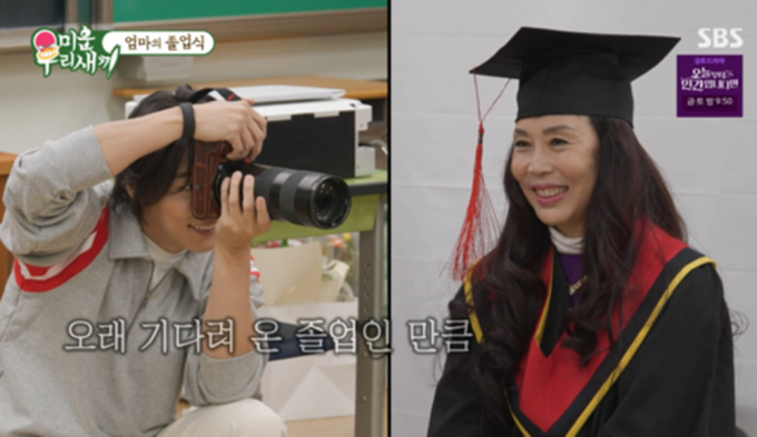 ‘미우새’윤시윤,졸업장母이벤트배우윤시윤이44년만에중학교졸업장을받은어머니를위해특별한날을준비하며시청자들에게깊은감동을선사했다.25일방송된SBS‘미운우리새끼’에서는윤시윤이어머니의방송통신중학교졸업식을찾아가는모습이공개됐다.윤시윤의어머니는가난한형편때문에졸업을석달남기고학업을포기해야했고,44년이지나서야졸업장을손에쥘수있었다.윤시윤은어머니의교실을찾아“어머님졸업식이기도하지만한번인사드리려고왔다”며같은반학우들한명한명에게직접준비한꽃다발을건넸다.그의등장에어르신들은환호와박수로화답했다.이어진식사자리에서윤시윤은어머니를위해직접밀가루를수타로치대며짜장면을만들었다.아들의정성어린모습을지켜본어머니는“김탁구다완전히”라며환하게웃었지만,짜장면을맛본뒤에는눈물을흘렸다.어머니는이날44년간가슴에묻어두었던아픈과거를꺼냈다.“마음이안좋았지.친구들졸업하고있는데.그거안보려고서울와버렸지”라며당시를회상했다.특히어머니는학교에서아들의존재를숨겨왔다고고백했다.“중학교도졸업하지못했던내모습을먼저보여주고싶지않았다.사람들이그럴때우리아들을어떻게볼까걱정돼숨겼다”고말했다.‘미우새’윤시윤,졸업장母이벤트(사진=SBS)어머니는눈물을쏟으며“엄마가네엄마라서너무미안하다고내가항상입버릇처럼그러잖아.네앞날에조금이라도안좋은영향을끼칠까봐.나는그게제일겁나고무섭다”며그간의가슴앓이를털어놨다.윤시윤은“그어떤것보다엄마는나한테용기와근성을물려줬기때문에엄마가큰걸나한테줬어.엄청큰선물을준거야”라며“엄마는내인생최고의선배다”라고화답해현장을눈물바다로만들었다.한편어머니의성적표가공개되면서국어,도덕,영어과목에서모두만점을받은것이확인돼놀라움을더했다.학우들은“엄마는상위1%였다”고전했다.이날자연스럽게결혼이야기도오갔다.학우들이결혼계획을묻자윤시윤은“결혼은서둘러서하고싶다”고조심스럽게답했다.이에어머니는“나는손주보면봐주려고베이비시터자격증도따놨다”고밝혀모두를놀라게했다.윤시윤은마지막으로전문촬영장비를직접챙겨어머니와학우들의졸업사진을촬영하며특별한날을완성했다.1986년생인윤시윤은어머니가스무살에자신을낳아홀로키웠다고과거방송을통해밝힌바있다.서정민기자Copyright©bnt뉴스.무단전재,재배포및AI데이터활용금지