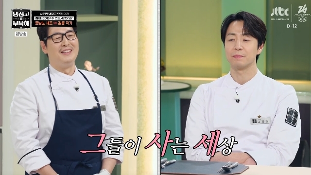 JTBC‘냉장고를부탁해since2014’캡처JTBC‘냉장고를부탁해since2014’캡처[뉴스엔서유나기자]셰프손종원,작가김풍의우정이셰프들의질투를받았다.1월25일방송된JTBC예능'냉장고를부탁해since2014'(이하'냉부')56회에서는김영옥,박준면이게스트로출연한가운데박준면의냉장고속재료들을이용한스타셰프들의15분요리대결이펼쳐졌다.이날김풍과윤남노가'잡채,이기실수있으시겠어요?'라는주제로요리대결을하게됐다.김풍과붙으면항상패배를해'공풍증'(김풍공포증)이있는윤남노는당황도잠시"제가사탄잡으러가겠다"며승부욕을불태웠다.그런가운데정호영은"김풍작가님앞치마가손종원셰프에게받은것"이라고제보했다.MC들과셰프들의"화제성1,2위는주고받는다","인기다나눠먹는다","1,2위끼리놀겠다는거지"라는질투속김풍은"확실히옷이날개라고입으니까사람이차분해지는게있다"고자랑했다.이어김풍은"이기회에(윤남노가)저를밟고훨훨날아갔으면좋겠다"고여유를부렸다.뉴스엔서유나stranger77@기사제보및보도자료[email protected]ⓒ뉴스엔.무단전재&재배포금지Copyright©뉴스엔.무단전재및재배포금지.