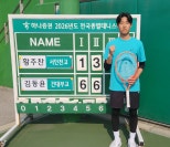 김동윤[대한테니스협회제공.재판매및DB금지](서울=연합뉴스)김동찬기자=김동윤(건대부고)이하나증권전국종별테니스대회18세이하남자단식에서우승했다.김동윤은10일경북김천시종합스포츠타운에서열린대회8일째18세이하남자단식결승에서황주찬(서인천고)을2-0(6-16-3)으로물리쳤다.16세이하남자단식결승에서는왼손잡이신재준(양구고)이김건호(천안계광중)를2-0(6-36-1)으로꺾고정상에올랐다.전날같은학교이관우와한조로16세이하남자복식에서도우승한신재준은대회2관왕이됐다[email protected]