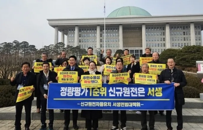 "울주서생에신규원전건설하라"[신규원전자율유치서생면범대책위원회제공.재판매및DB금지](울산=연합뉴스)장영은기자=정부의신규원전건설계획과관련해울산울주군일부지역주민들이본격적인원전유치활동에나설계획이다.울주군은원전자율유치신청여부를신중히검토할방침이다.울주군이27일서생면에서연'주민과의대화'에서지역주민단체관계자는"서생면주민들은그동안서울용산,국회등으로가서신규원전필요성을알려왔다"며"울주군과군의회에서빨리(신규원전자율유치를)의결해야한다"고말했다.울주군은이에대해한국수력원자력에서먼저자율유치신청공모를할계획이며,울주군이공모하려면3월중의회승인을받아야한다는일반행정절차를소개했다.울주군관계자는"울주군은행정과의회가한목소리내고있다"며"주민과의회와충분히검토해서하겠다"고밝혔다.서생면지역주민들은원전유치에적극적인모습이다.서생면주민협의회등25개지역주민단체가참여한신규원전자율유치서생면범대책위원회는2월중5천여명목표로서명운동에들어가고,또다른주민단체는다음달경주한국수력원자력본사앞에서원전유치촉구대회를열기로했다.앞서서생면범대위는이달15일국회소통관에서기자회견을열고"준비된울주서생면에신규원전을건설하라"고촉구하기도했다.범대위는"인공지능(AI)데이터센터와반도체산업등국가전략산업확대로전력수요가급증하는이른바'전기전쟁'시대를맞아고리원전종료이후현실적인에너지대안으로서생면신규원전자율유치를공식촉구한다"고밝혔다."신규핵발전소계획철회하라"[신규원전반대울주군대책위제공.재판매및DB금지]반대목소리도나오고있다.신규원전반대울주군대책위,탈핵울산시민공동행동,울산기후위기비상행동등3개단체는27일울주군청프레스센터에서기자회견을열고"신규핵발전소건설계획을즉각철회하라"고촉구했다.이들은"부산고리와울산서생지역은세계최대핵발전소밀집지역(10기)으로2기가추가되면위험은그만큼커질수밖에없다"며"우리는일부서생주민들의신규핵발전소유치운동을중단할것을촉구하며,울주군과군의회가유치에가담한다면결사항전으로막아내겠다"고밝혔다[email protected]▶제보는카톡okjeboCopyright©연합뉴스.무단전재-재배포,AI학습및활용금지