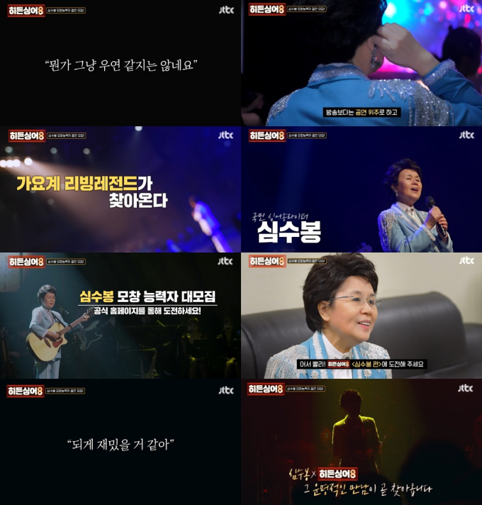 (MHN김설기자)한국대중가요의살아있는전설,가수심수봉이JTBC'히든싱어8'의문을연다.2026년방송을앞둔JTBC대표음악예능'히든싱어8(기획홍상훈,연출신영광)'측은최근심수봉의출연확정소식을알리며역대급시즌의시작을예고했다.독보적인음색과섬세한감성으로시대를관통해온심수봉은그간방송에서쉽게만나기어려웠던아티스트인만큼,이번출연소식은음악팬들에게큰놀라움을안기고있다.공개된티저영상에서심수봉은"'히든싱어'와의만남이그냥우연같지는않다.되게재미있을것같다"라며모창능력자들의참여를독려함과동시에본인역시무대에대한설렘과기대감을드러냈다.제작진의감회도남다르다.제작진은"프로그램초기부터꼭모시고싶었던전설을이제야모실수있게되어영광이다"라며"'그때그사람','남자는배여자는항구','비나리','백만송이장미'등수많은명곡을남긴심수봉의음악인생을기리기위해아주특별한구성을준비중"이라고밝혔다.시즌8을맞아장르와세대를넘나드는'무한확장'을선언한'히든싱어'는심수봉편을통해거장의목소리와이를완벽하게재현하려는모창능력자들의대결을넘어,전세대가공감하는감동의무대를선보일전망이다.사진=JTBCCopyright©MHN.무단전재및재배포금지.