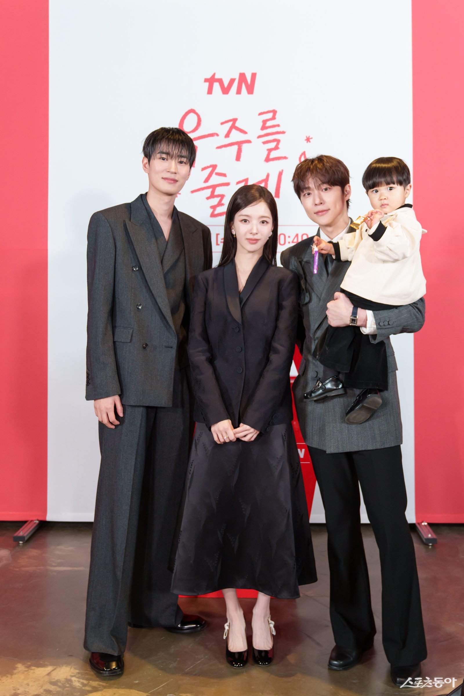 ‘로코’열풍속에서tvN새수목드라마‘우주를줄게’가‘90년대생남주스타들’의육아로코로승부수를던졌다.27일열린제작발표회에서배인혁과박서함은각기다른결의‘청춘남주’로서20개월조카‘우주(박유호)’를매개로관계가재편되는동거로맨스를예고했다.90년대생의생활감각과연애감정,그리고‘육아’라는현실이맞물리며,설렘뿐아니라힐링과성장까지동시에겨냥한작품이다.‘우주를줄게’는첫만남부터꼬인사돈남녀가하루아침에20개월조카우주를함께키우게되면서벌어지는좌충우돌동거로맨스다.‘동거’와‘육아’라는현실재료위에‘첫사랑’이라는로코의고전장치가얹히며감정선이입체화된다.연애만으로도버거운나이에아이까지떠안은순간,관계는감정의속도를바꾸고선택의무게를키운다.배우들이반복해강조한것도“로코인데,삶이들어있다”는지점이다.배인혁이맡은선태형은사진작가어시스턴트로겉은까칠하지만속은여린‘겉바속촉’캐릭터다.배인혁은“처음엔왜이렇게툴툴대고까칠할까싶었다.그럴수밖에없는이유를알고나니애정이갔다”며“이친구를잘표현해서사람들이공감과위로를받았으면좋겠다”고말했다.사랑을주는법을몰랐던태형이현진(노정의)과우주를만나며‘사랑을배워가는과정’이핵심이라는설명이다.즉,‘까칠함’은매력포인트이면서동시에성장의출발점이다.‘우주’는이성장서사를단숨에설득시키는장치다.배인혁은촬영중우주에게갑작스럽게뽀뽀를받았던순간을떠올리며“세상을다가진기분이들었다”고웃었다.‘육아로코’가가진즉각적인힐링포인트가배우의말로도확인된셈이다.박서함이연기하는박윤성역은식품회사기획팀장으로비주얼과능력치가모두‘만렙’인완벽남서브남주로삼각관계를만든다.현진의첫사랑으로등장해감정선에‘재회의설렘’과‘첫사랑의온도’를끼워넣는다.박서함은“원래로코장르에도전해보고싶었다.생각보다더예쁘고사랑스러운스토리가담겨있더라”고출연계기를밝혔다.그는“너무완벽한남자이기도하고,자기감정에솔직하고자신감도넘쳐서이런멋있음을어떻게표현해야하는지고민을많이했다”고도했다.이에배인혁이“박서함씨만큼딱맞는사람이없는데왜고민하셨는지모르겠다”고즉석칭찬을더하며현장을훈훈하게만들었다.‘우주를줄게’는2월4일첫방송된다.김겨울기자[email protected]©스포츠동아.무단전재및재배포금지.
